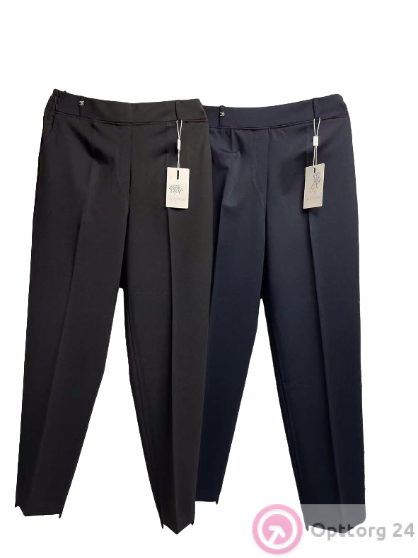Женские брюки зауженные к низу, с карманами по бокам. Имеют шлевки для пояса. Модель представлена в темно - синем и темно - сером цвете.