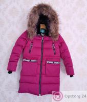 Пуховик детский для девочки декорирован искусственным жемчугом