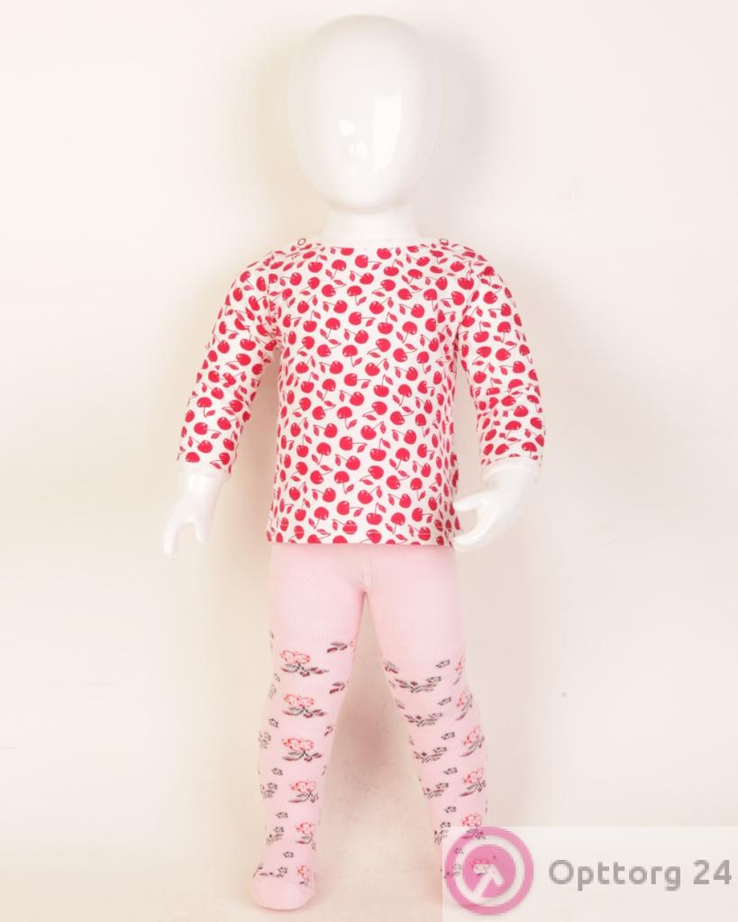 Колготки детские розовые с цветочным принтом оптом