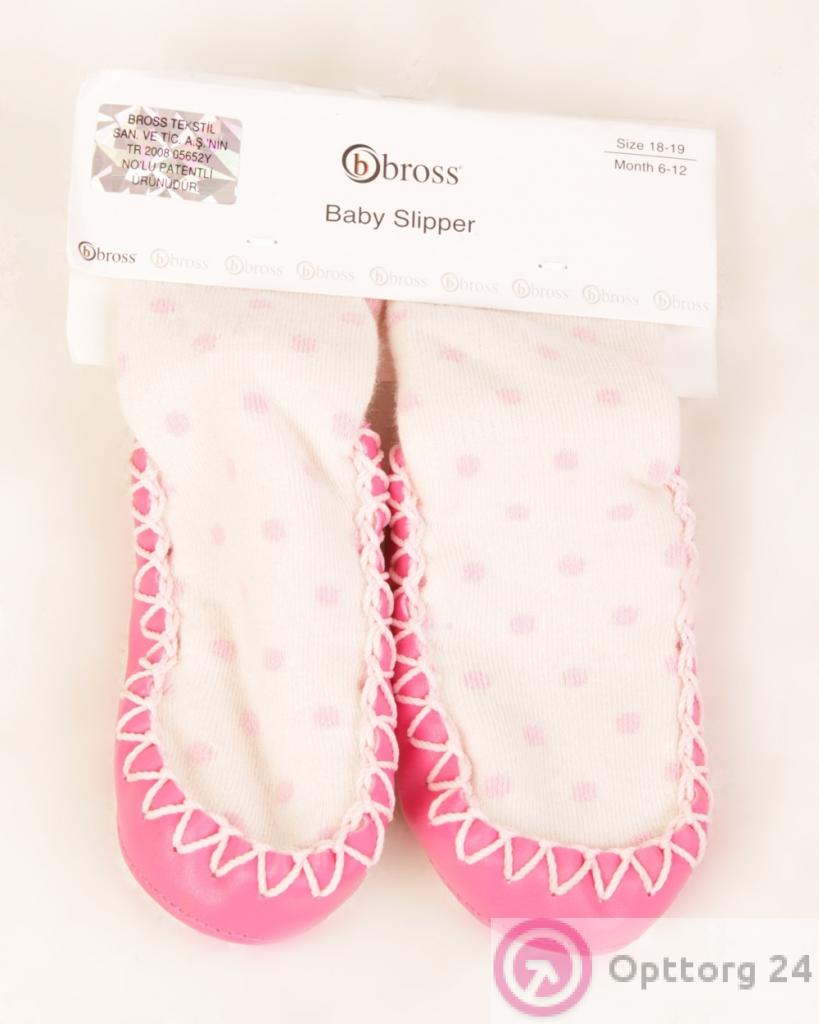 Пинетки детские белые с принтом и розовой подошвой оптом