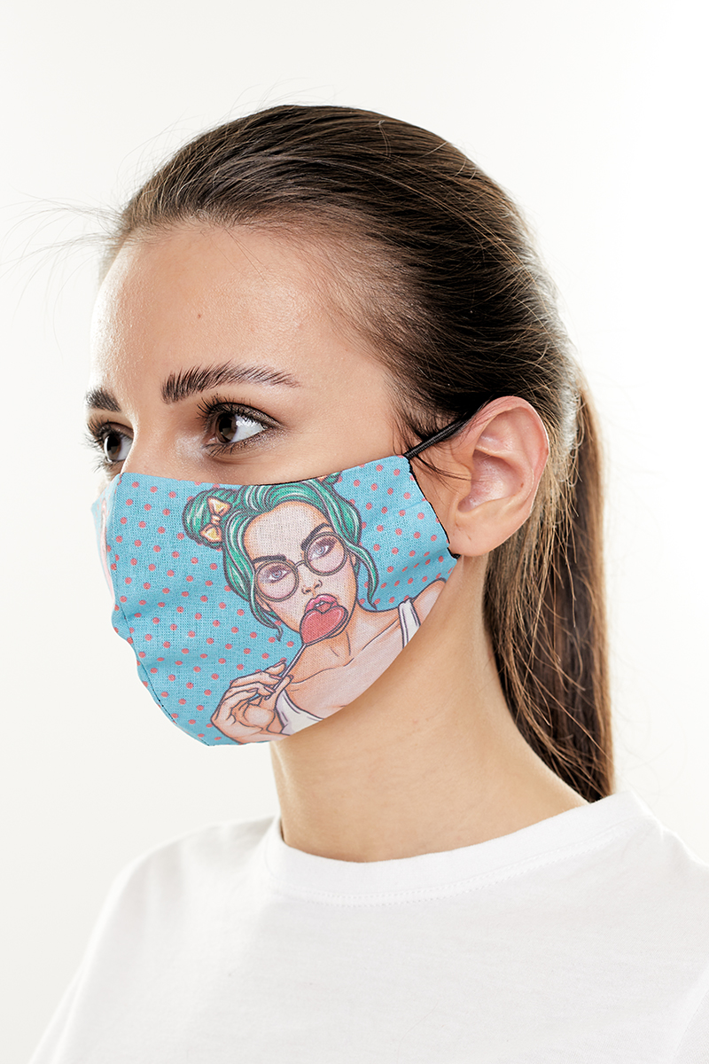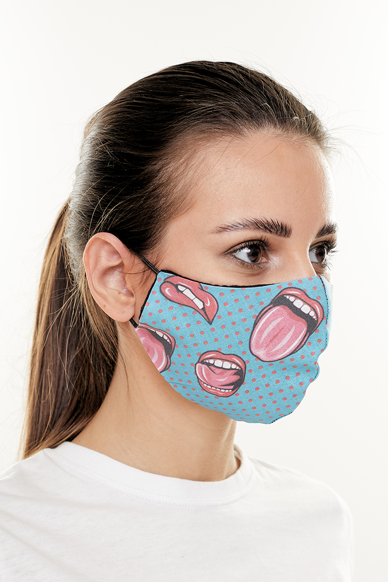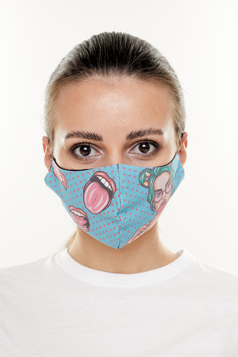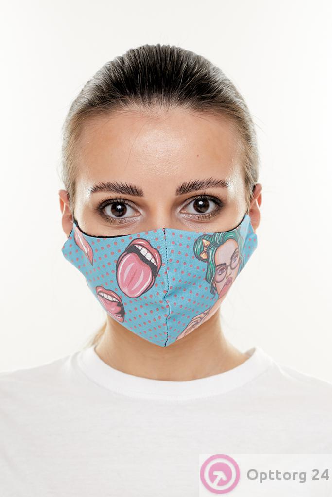 Описание: Маска тканевая двухслойная многоразового использования голубого цвета в горошек. После использования для защиты нуждается в стирке.