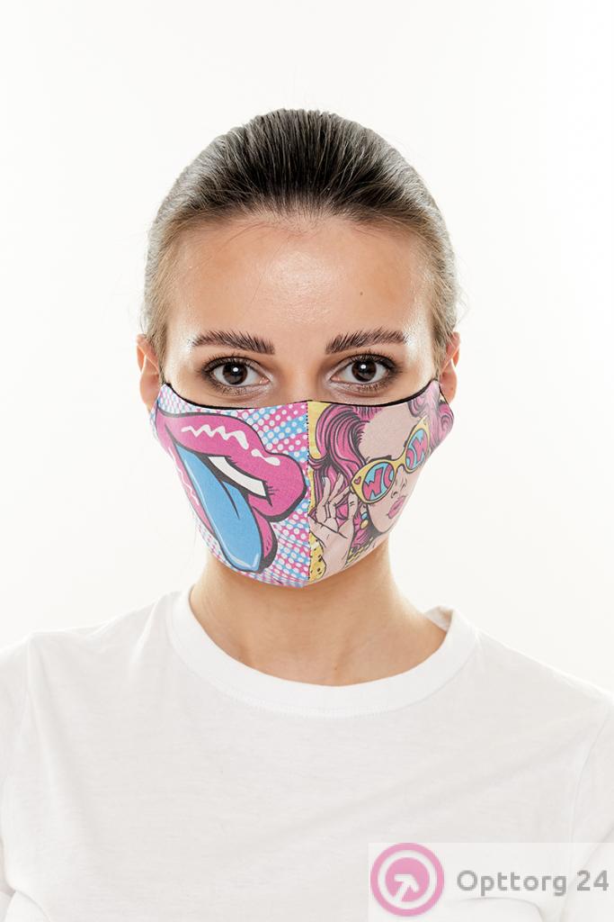 Описание: Маска тканевая двухслойная многоразового использования с двумя рисунками. После использования для защиты нуждается в стирке.
