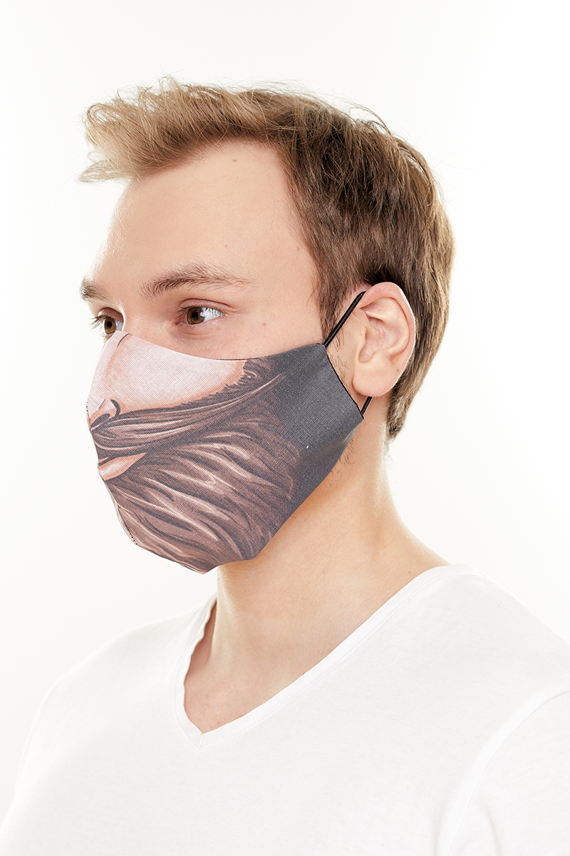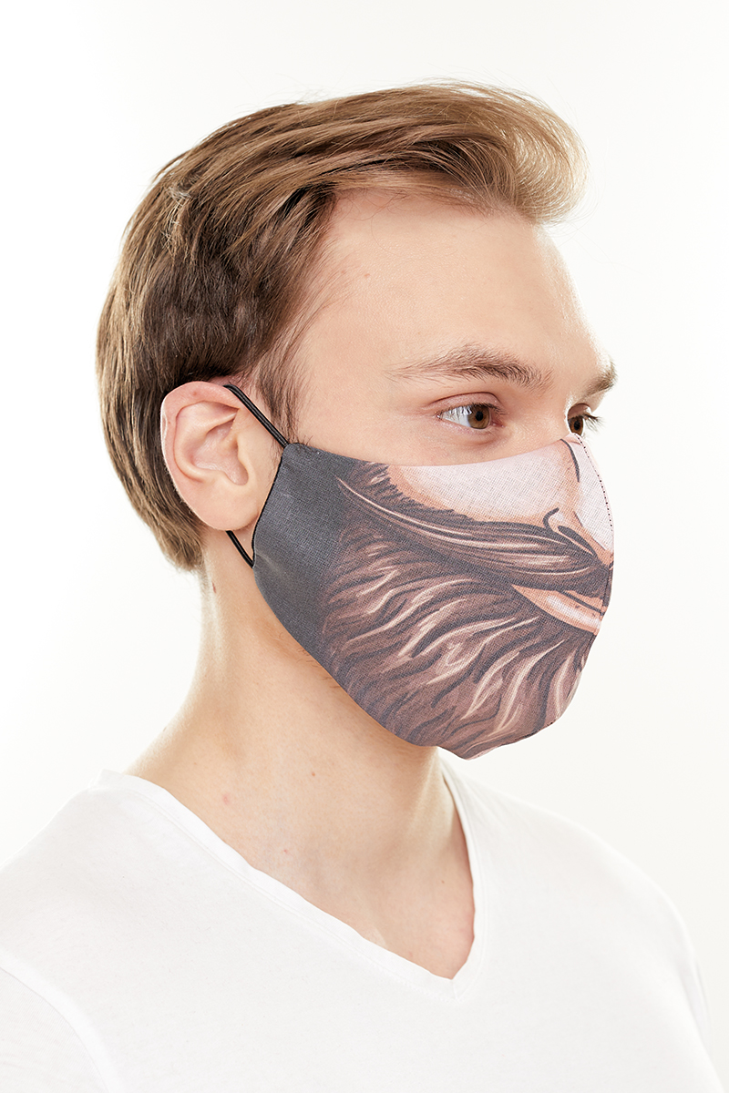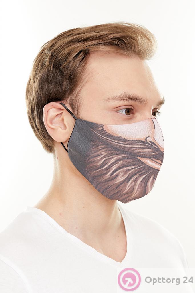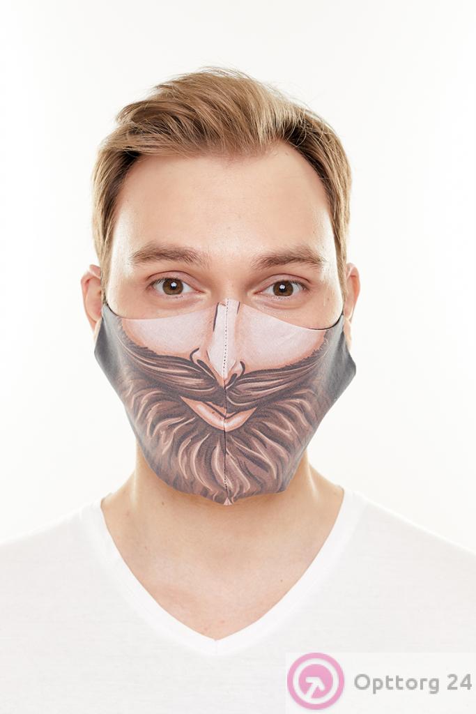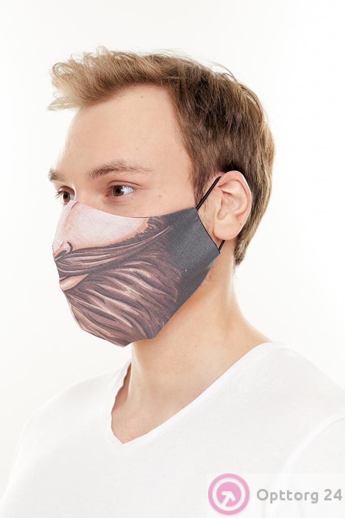 Описание: Маска тканевая двухслойная многоразового использования с принтом бороды. После использования для защиты нуждается в стирке.