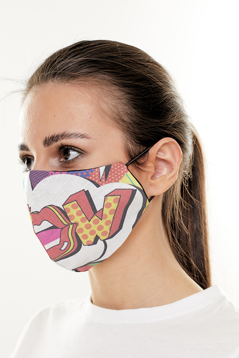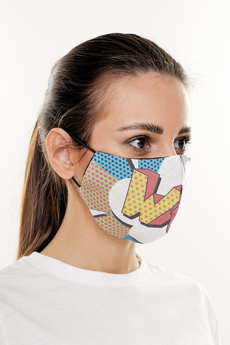 Описание: Маска тканевая двухслойная многоразового использования с принтом букв. После использования для защиты нуждается в стирке.