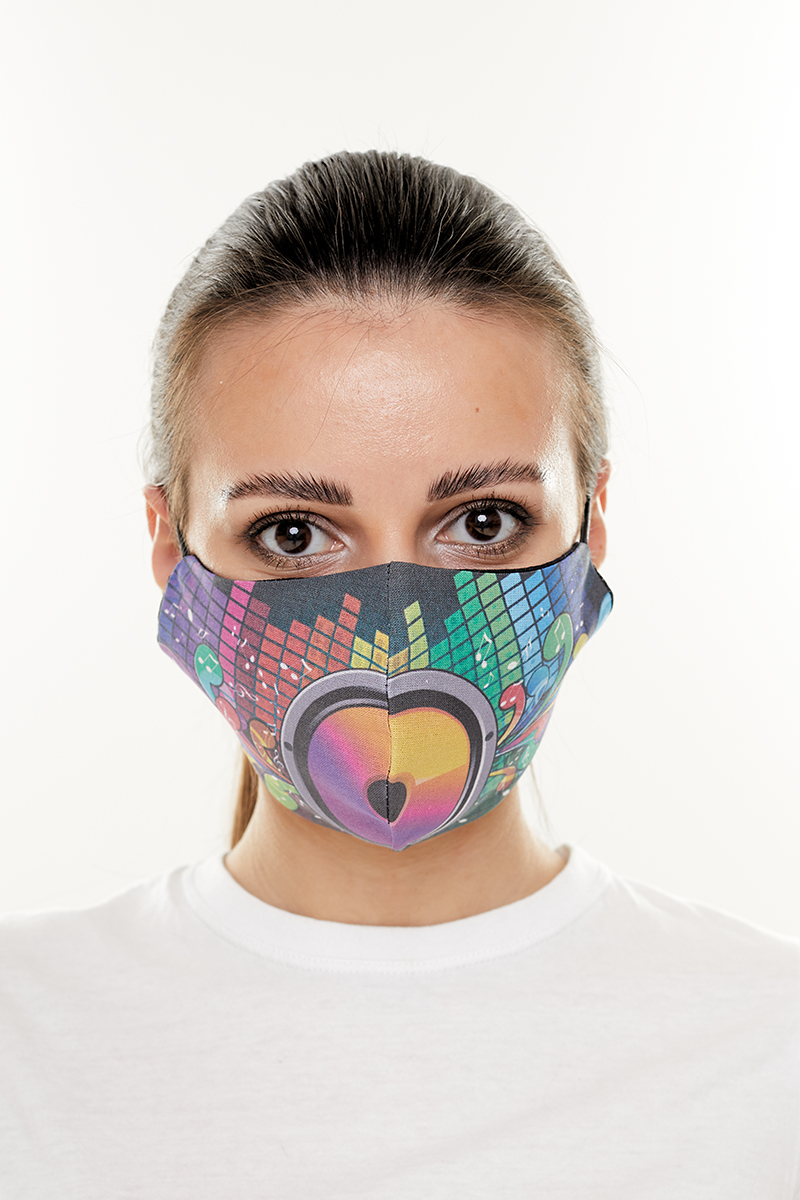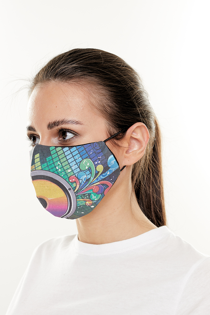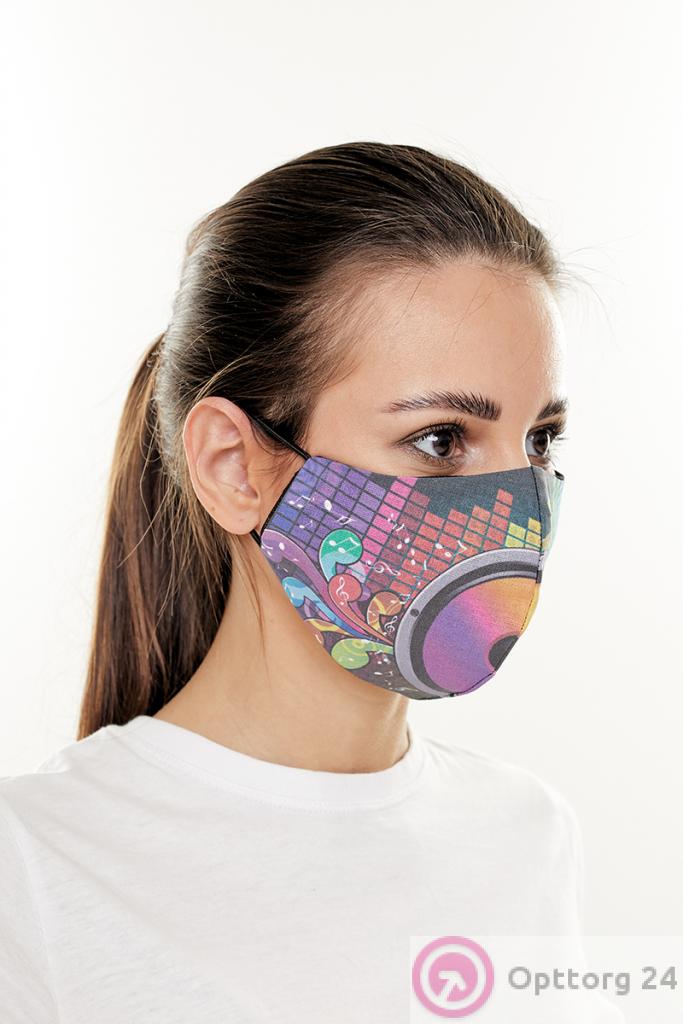 Описание: Маска тканевая двухслойная многоразового использования с принтом динамика. После использования для защиты нуждается в стирке.