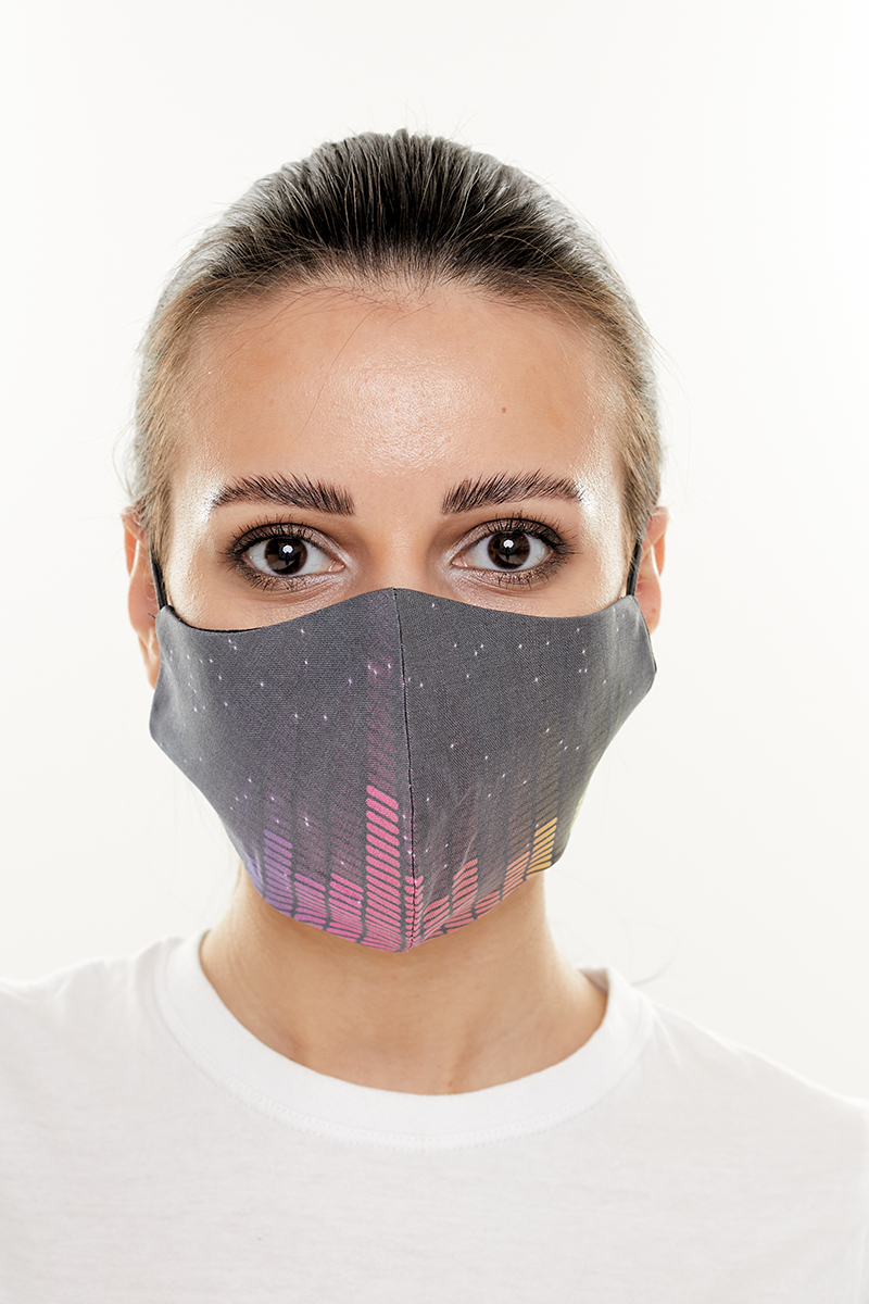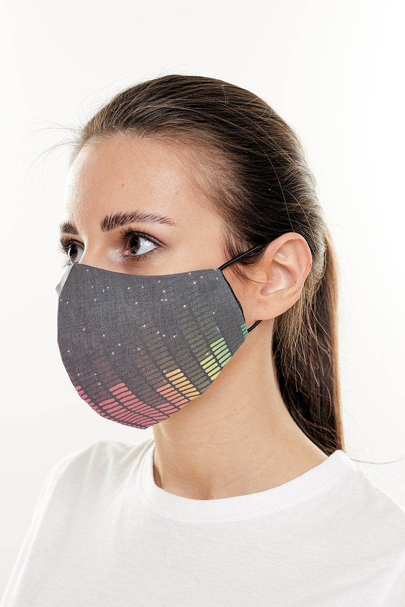 Описание: Маска тканевая двухслойная многоразового использования с принтом эквалайзера. После использования для защиты нуждается в стирке.