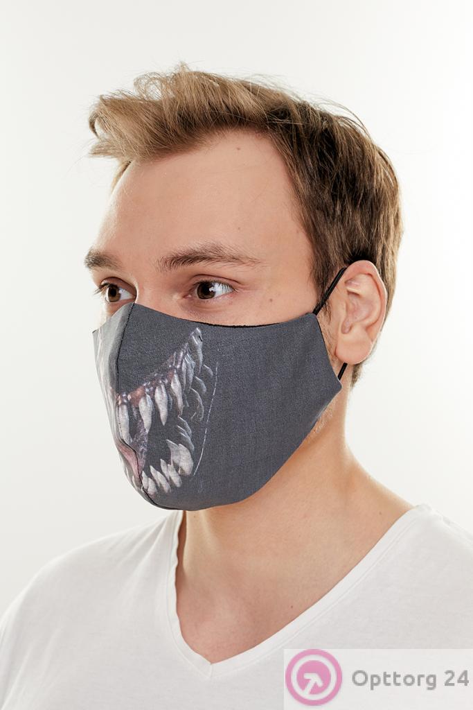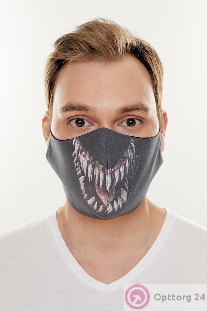 Маска тканевая с принтом серого цвета оптом