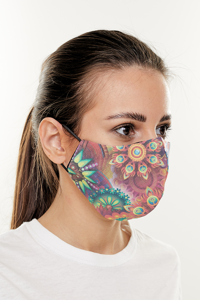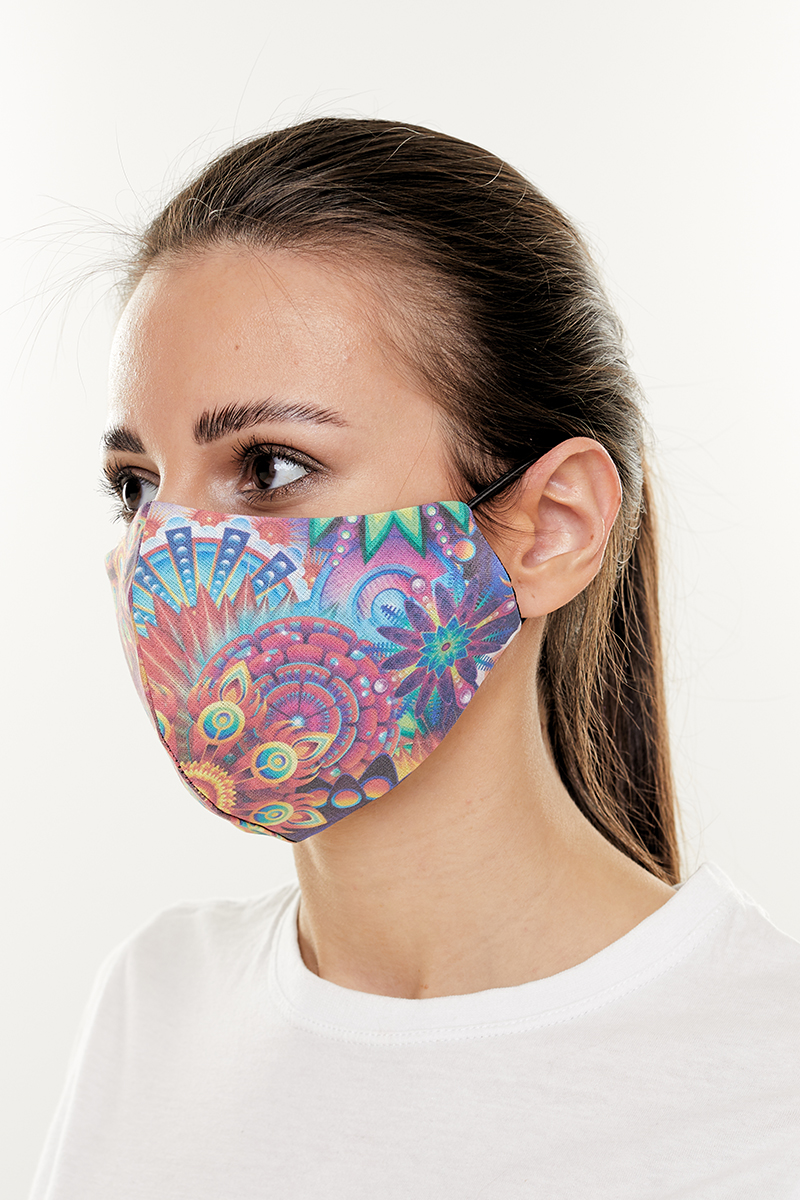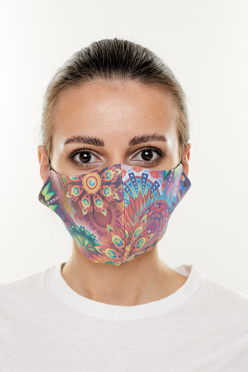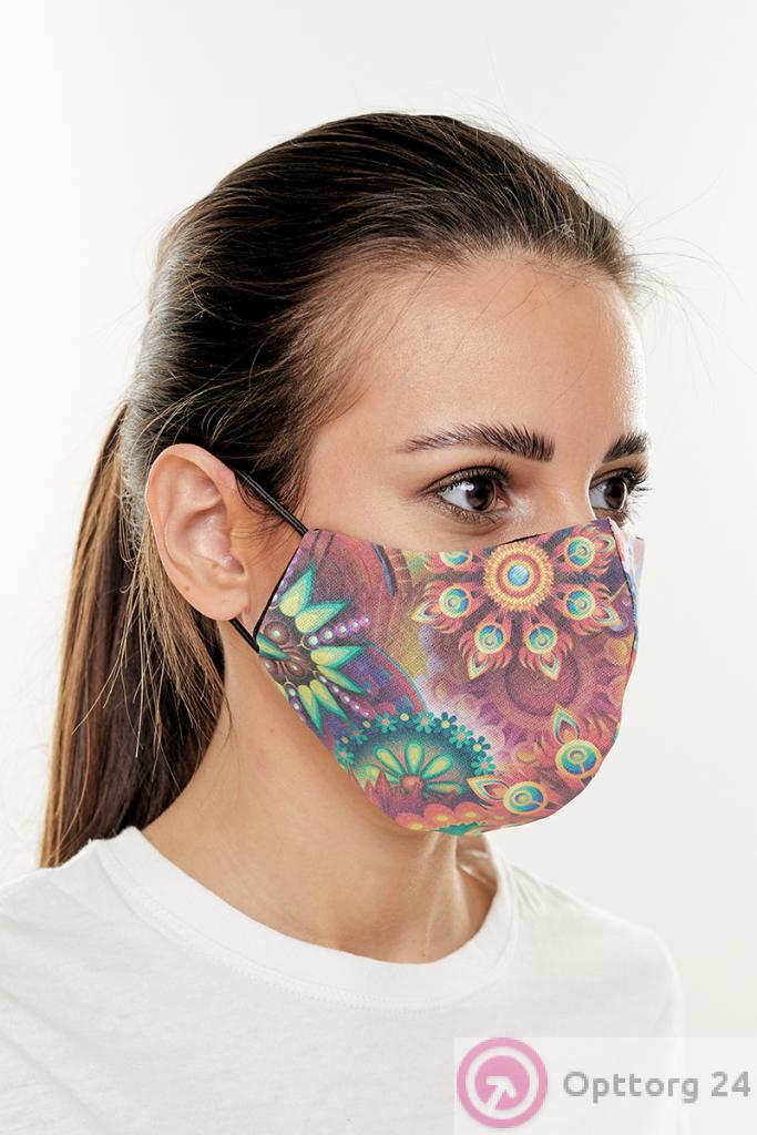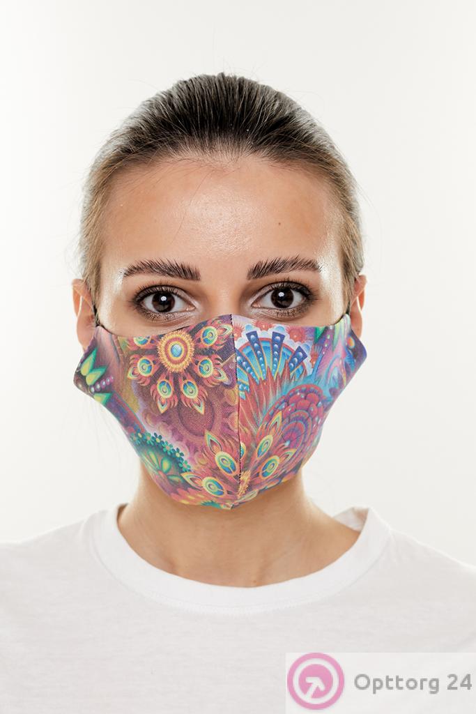 Описание: Маска тканевая двухслойная многоразового использования с ярким принтом. После использования для защиты нуждается в стирке.