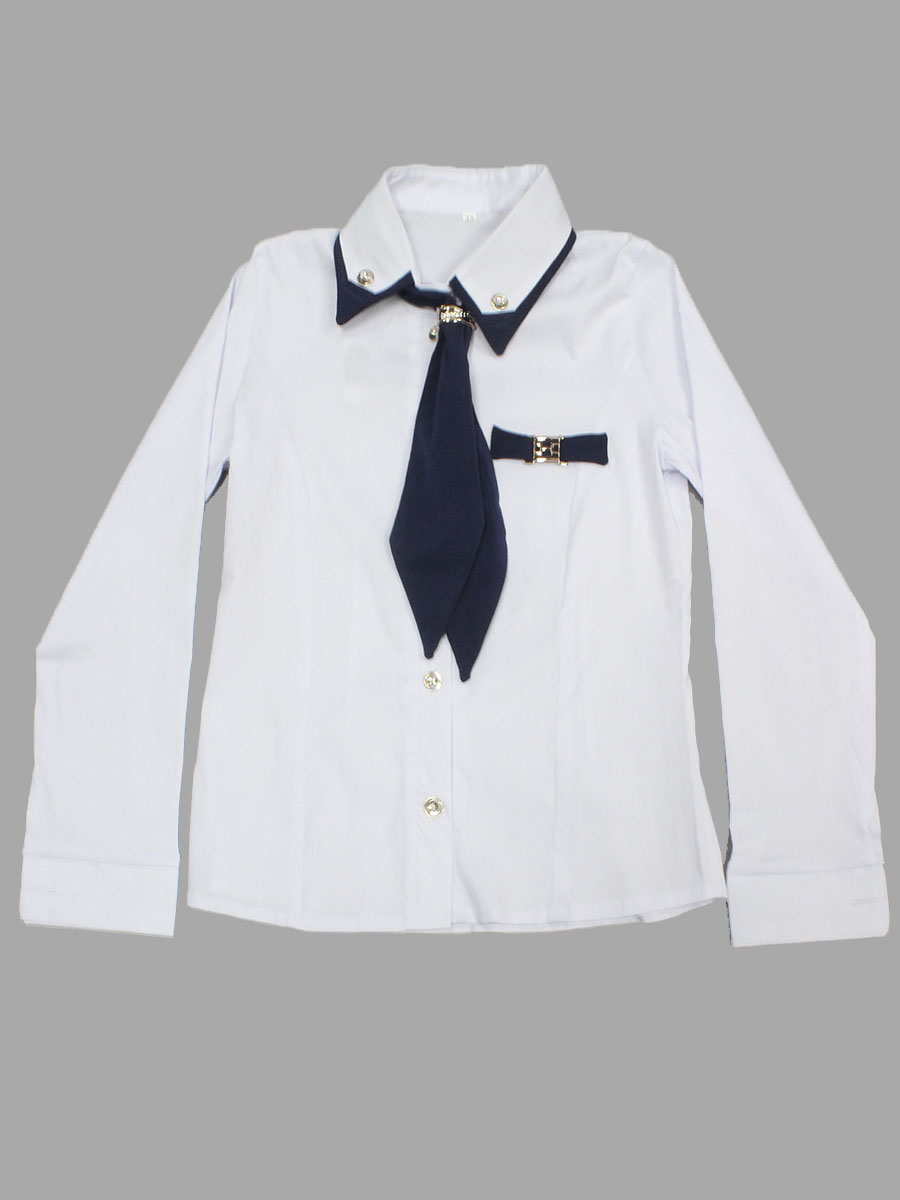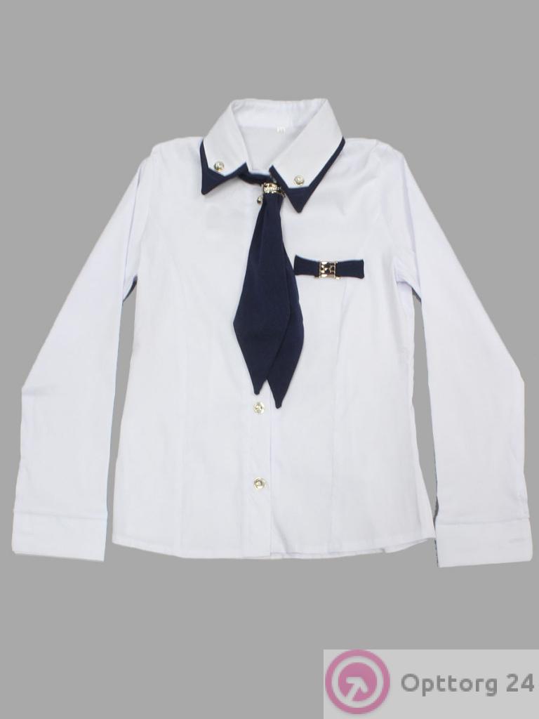 Блузка детская белого цвета с галстуком темно-синего цвета. оптом