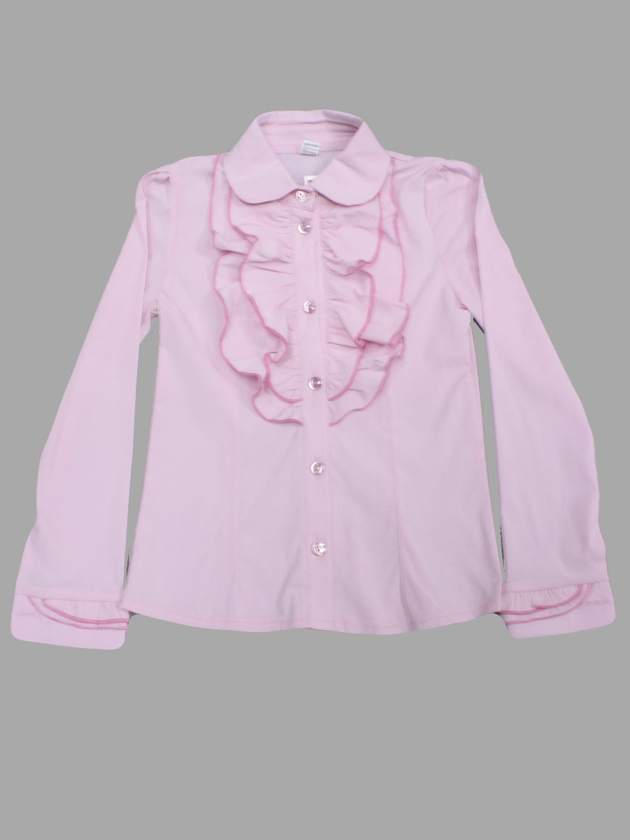 Детская школьная блузка для девочки, школьная модель розового цвета с длинным рукавом.
