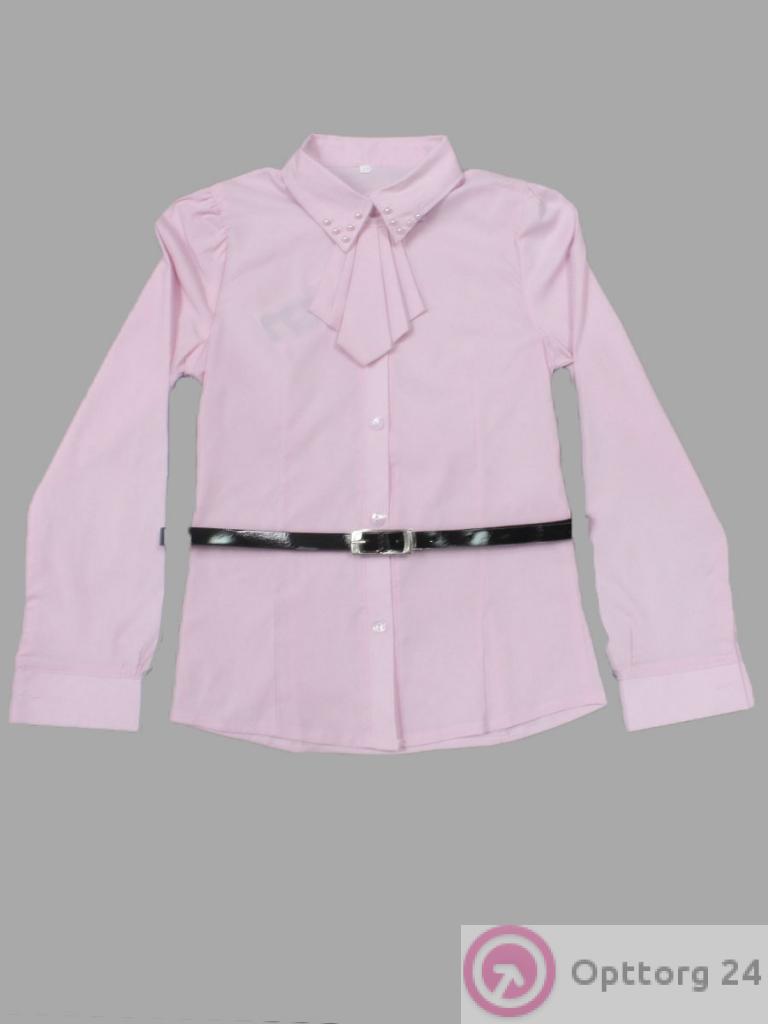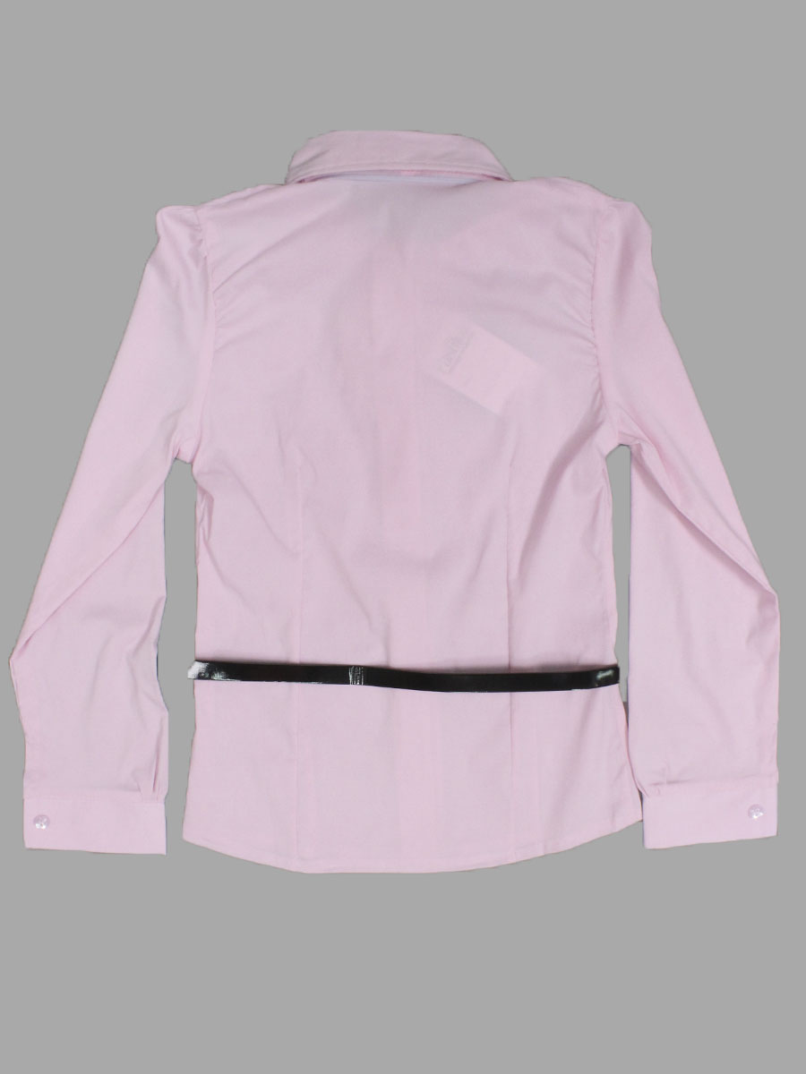 Детская блузка розового цвета с поясом, удлиненная модель для девочки.