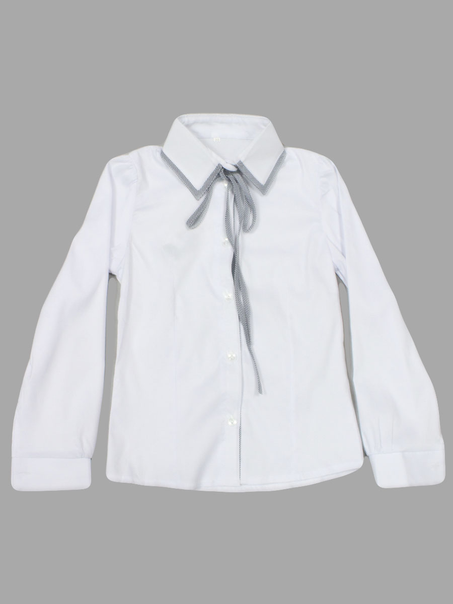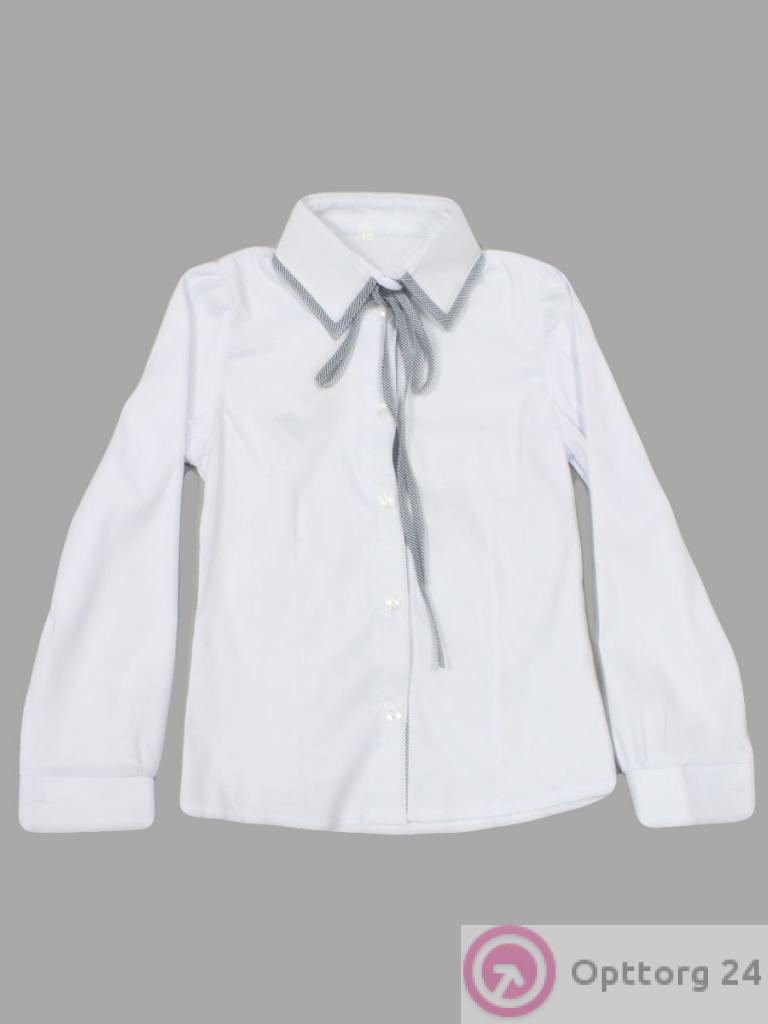 Блузка для девочки, модель белого цвета с завязкой в области ворота. оптом