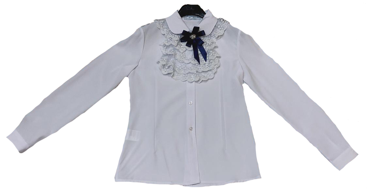 Описание: Блузка для девочки с длинным рукавом белого цвета декорирована бантом. Отложенный воротничок. Застегивается на ряд пуговиц.