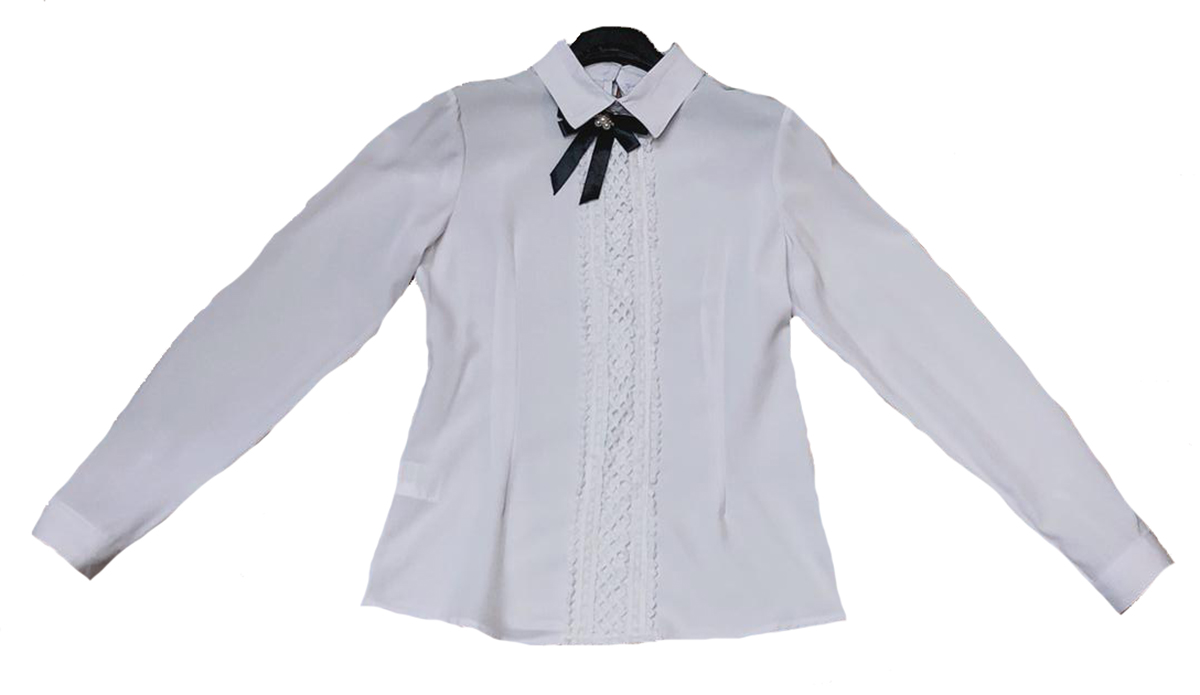 Описание: Блузка для девочки с длинным рукавом белого цвета декорирована бантом. Отложенный воротничок. Застегивается сзади.