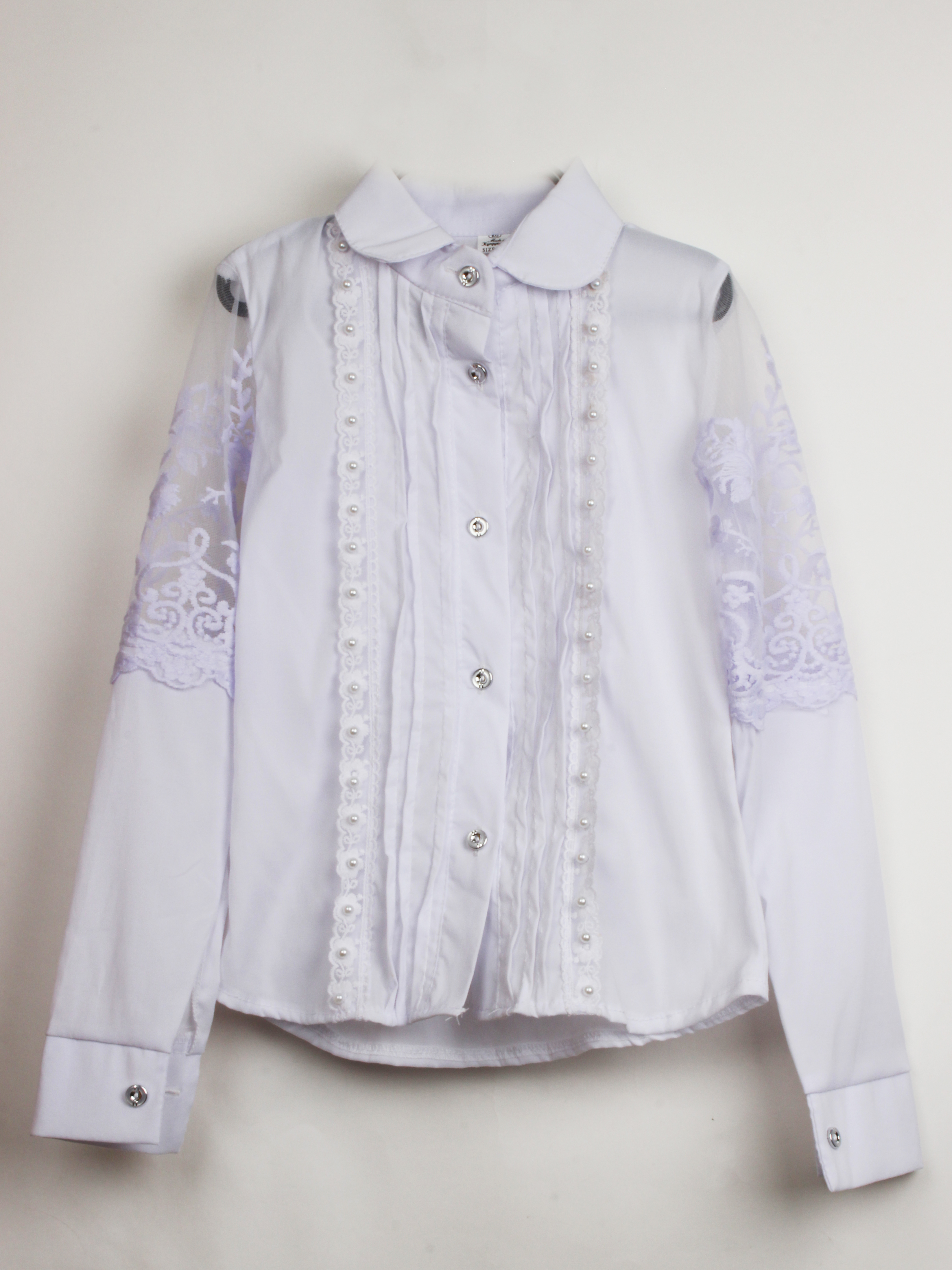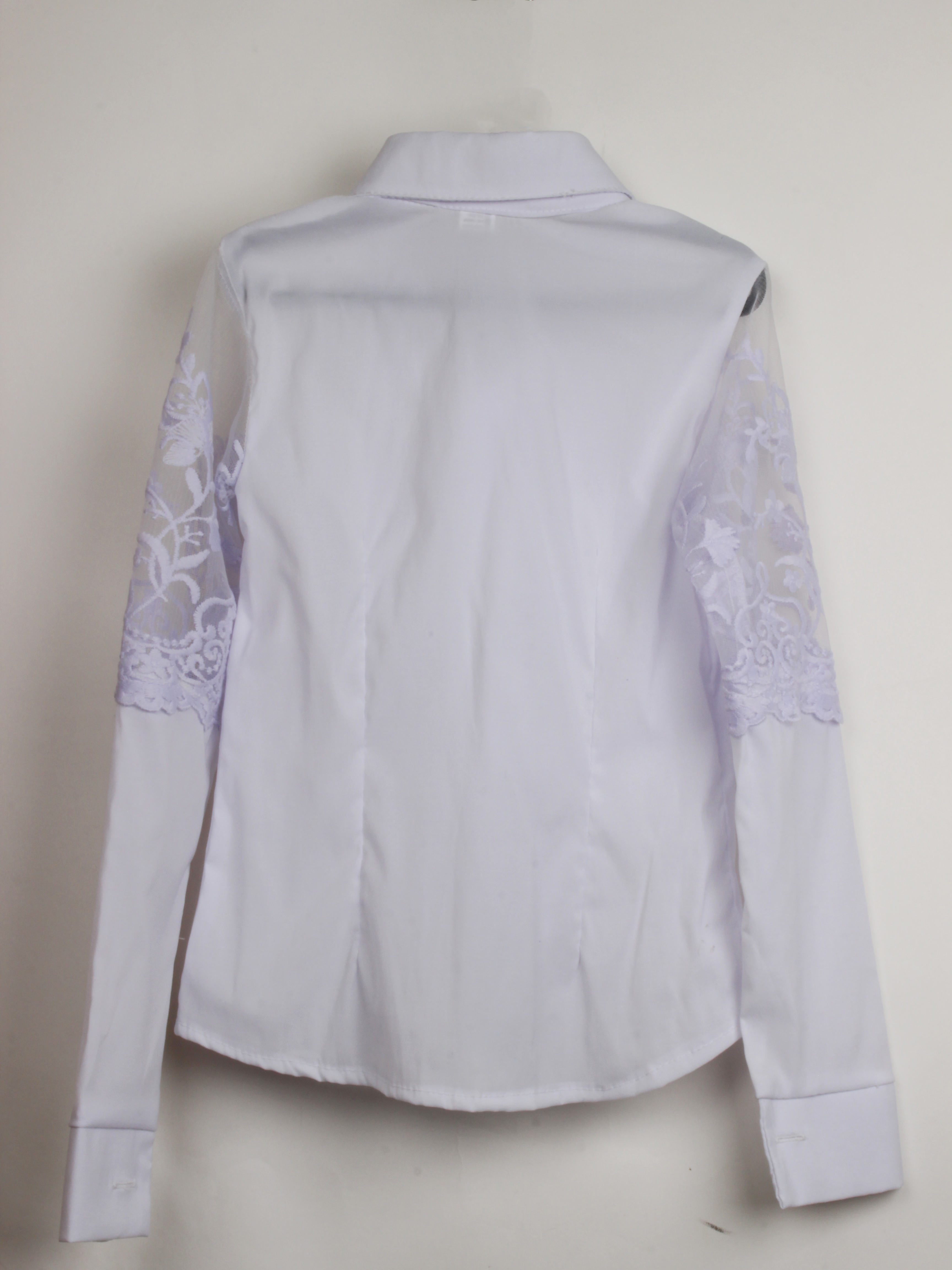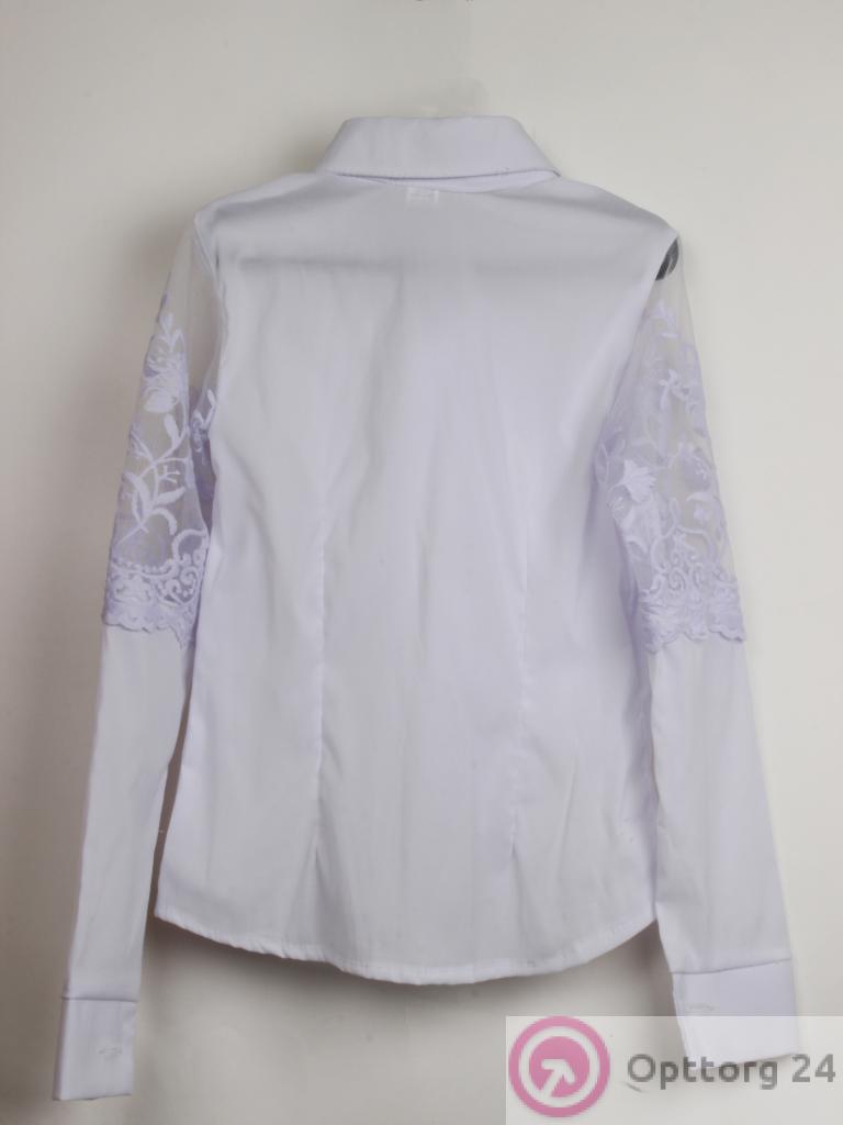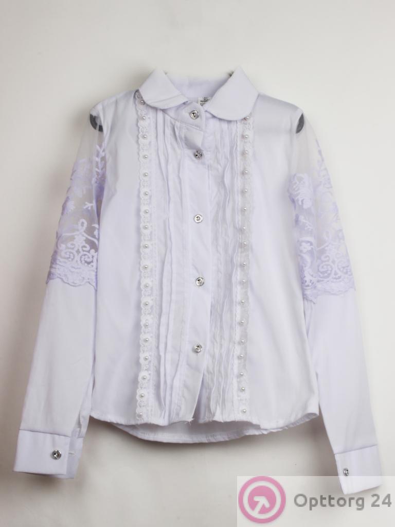Блузка для девочки школьная белая с прозрачным кружевом на руках оптом