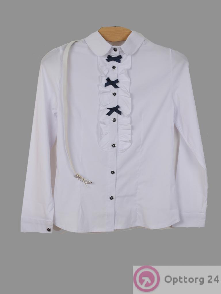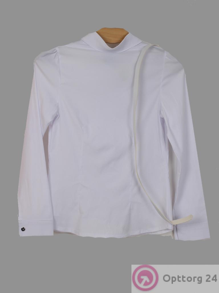 Блузка девичья для школьницы. С поясом и бантиками. Белая, классическая.