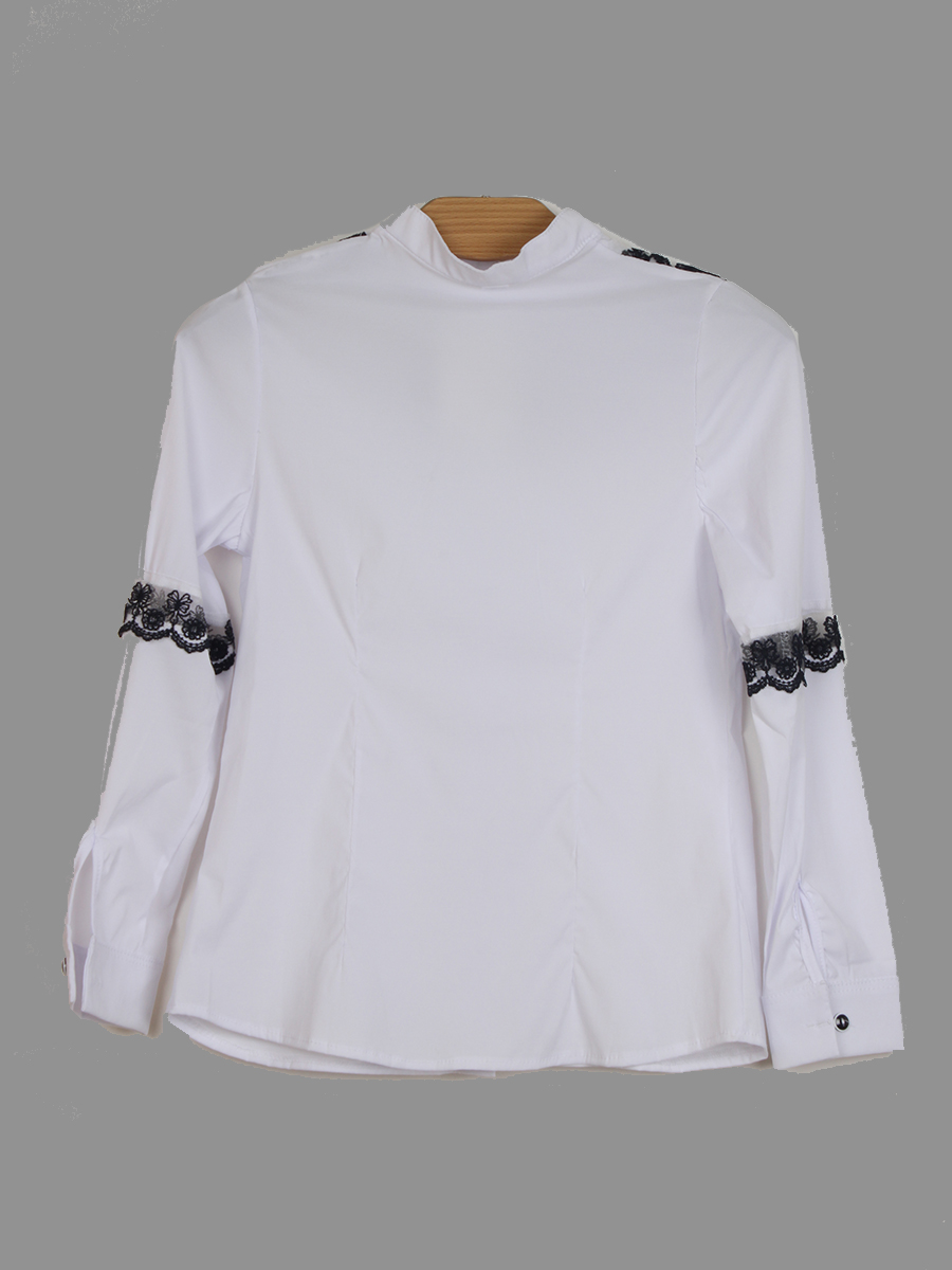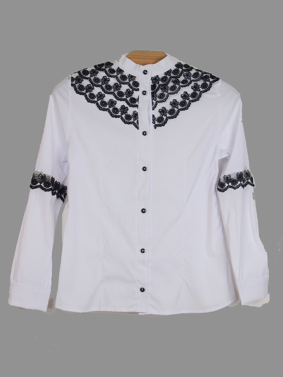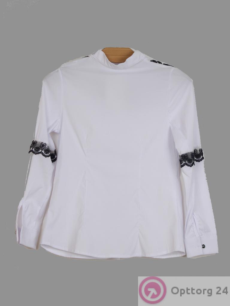 Блузка для девочки школьная с черным кружевом и пуговицами оптом