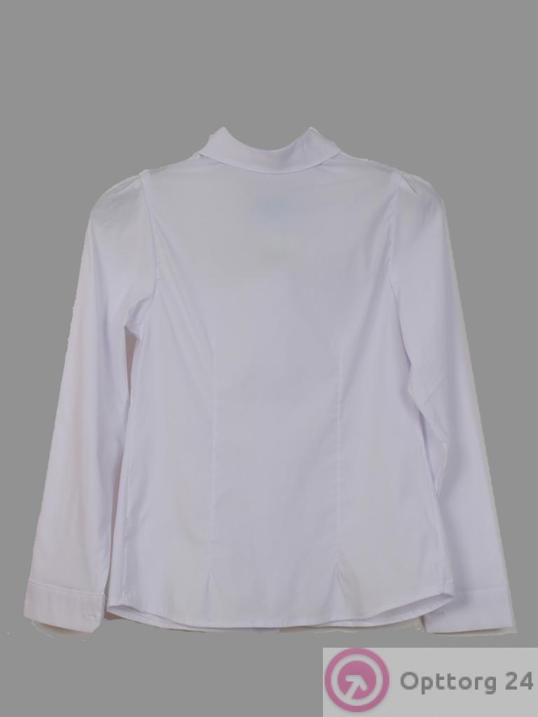 Блузка девичья для школьницы. С бантиком-бабочкой. Белая, классическая.