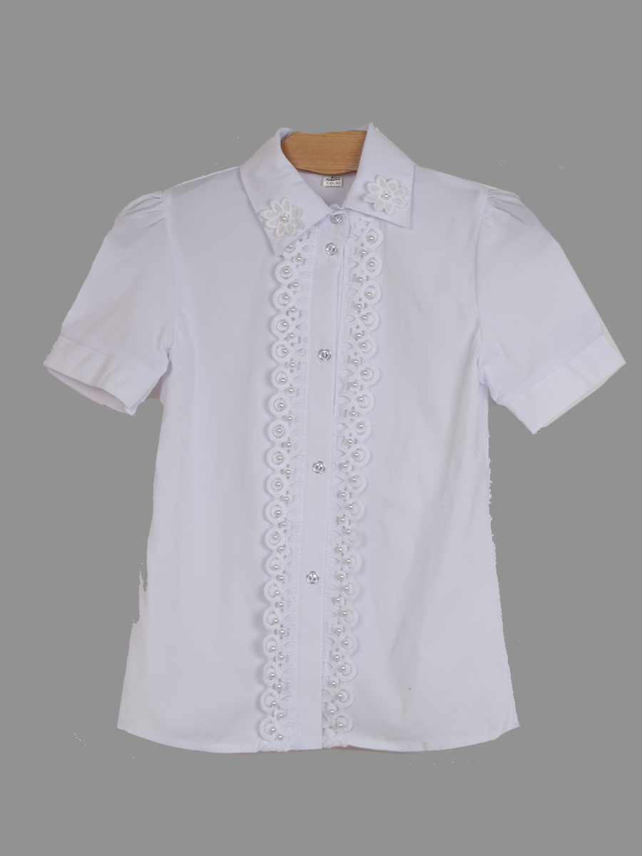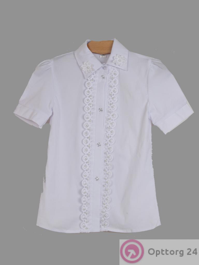 Блузка для девочки школьная с коротким рукавом и нашивкой оптом