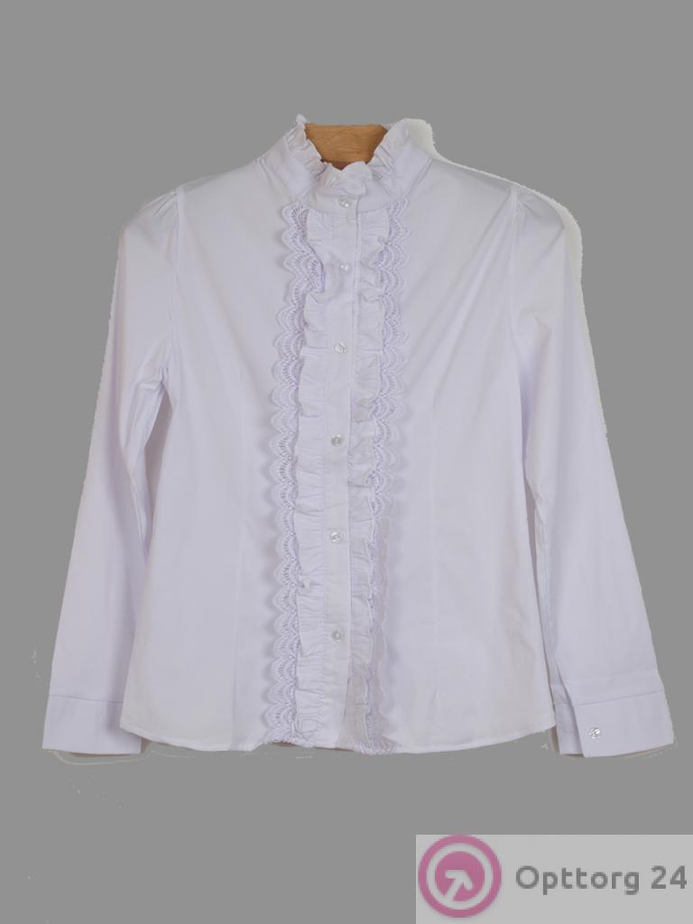 Белая, классическая блузка с вертикальным жабо. Для уроков.