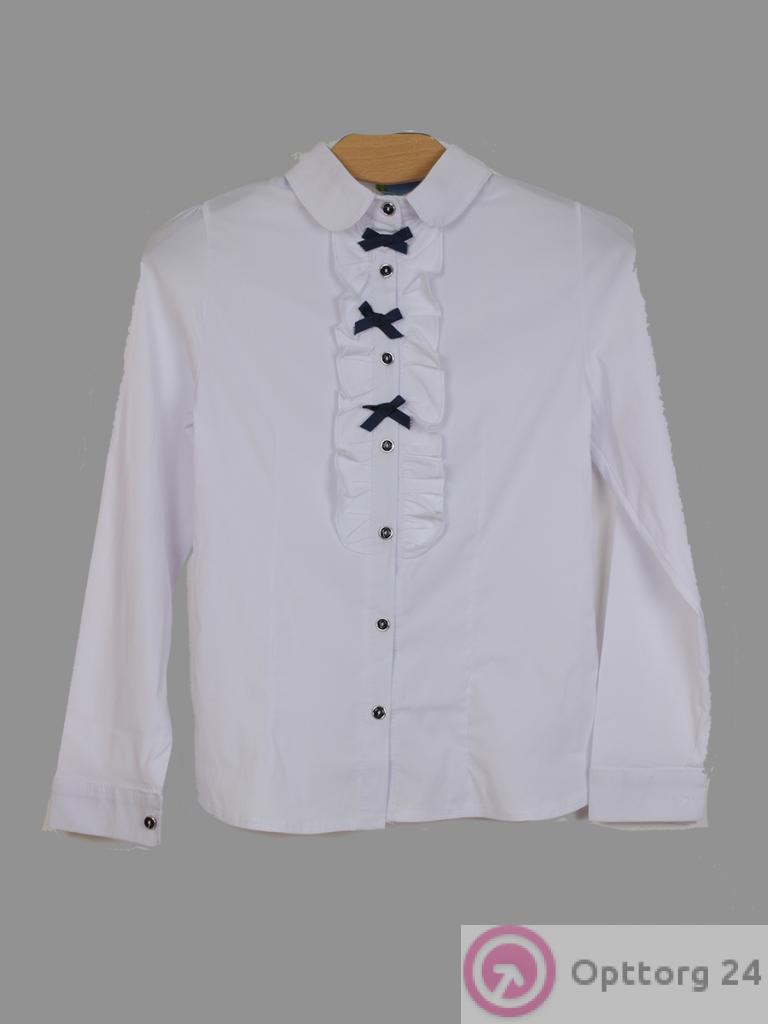 Блузка девичья для школьницы. С жабо и бантиками. Белая, классическая.