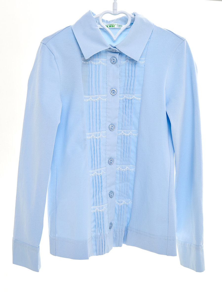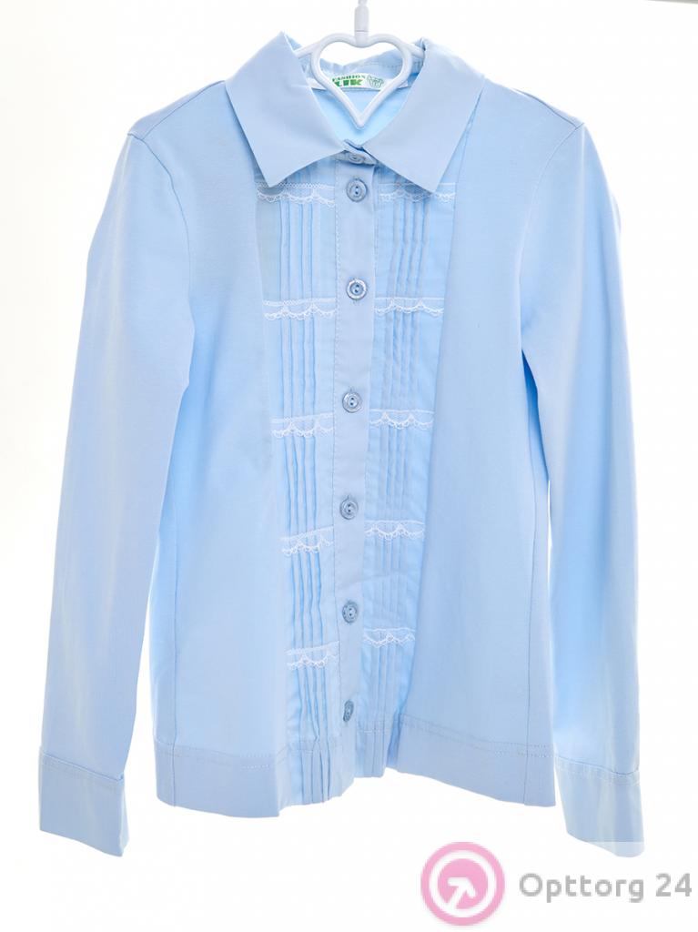 Описание: Блузка для девочки школьная трикотажная (ассортимент моделей). Нежно-голубого цвета. Длинный рукав, застегивается на пуговицах. Однотонная.