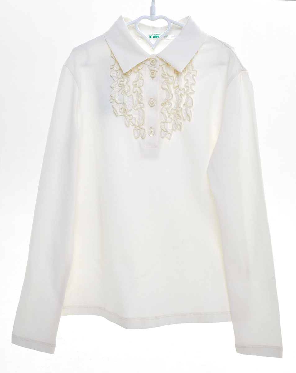 Описание: Блузка для девочки школьная трикотажная (ассортимент моделей). Нежно-кремового цвета. Длинный рукав, застегивается на пуговицах. Однотонная.