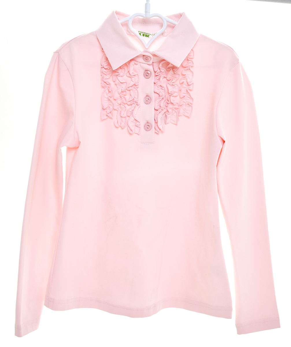 Описание: Блузка для девочки школьная трикотажная (ассортимент моделей). Персикового цвета. Длинный рукав, застегивается на пуговицах. Однотонная.