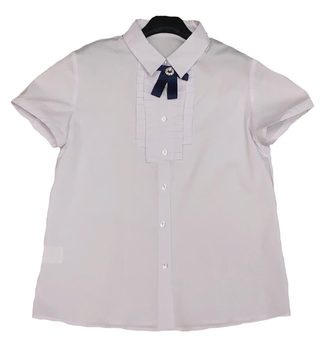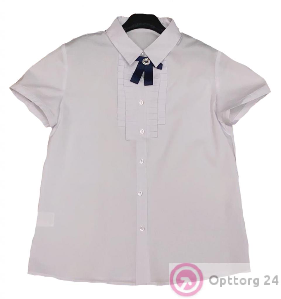 Описание: Блузка подростковая для девочки с коротким рукавом белого цвета, декорирована бантом. Отложенный воротничок. Застегивается на ряд пуговиц.