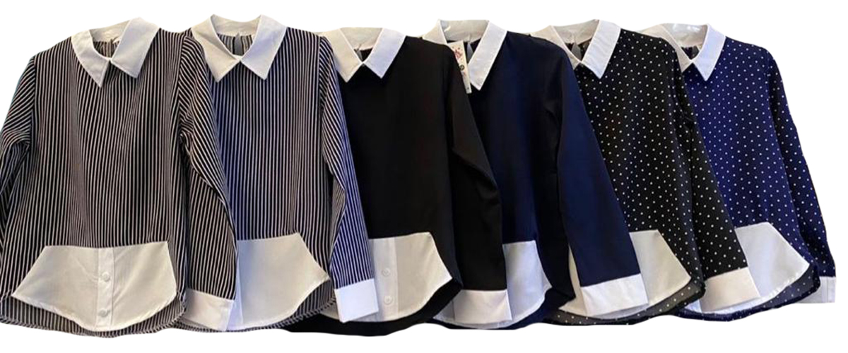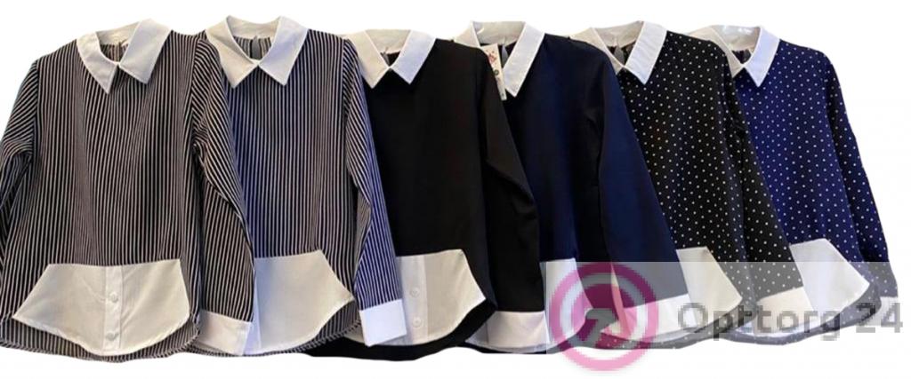Описание: Блузка-рубашка (имитация) для девочки. Отложенный воротничок, свободного кроя. Манжет рукавов на трикотажной резинке.