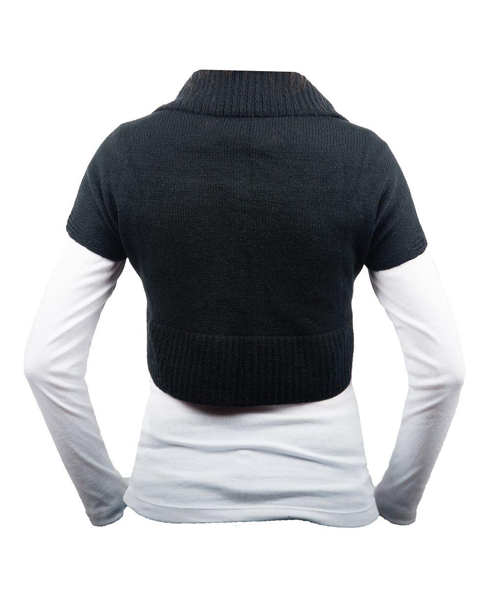 Это болеро станет прекрасным дополнением к любому платью. Теплое с отделкой в рубчик, классический черный цвет, простой крой обеспечивает идеальную посадку. Завязки на крупной пуговице - изысканный акцент. Ничего лишнего. Модель подойдет как для повседневного гардероба так и для выхода в свет.
