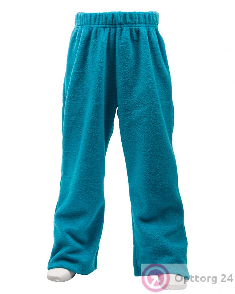 Брючки детские теплые из флиса бирюзового цвета оптом