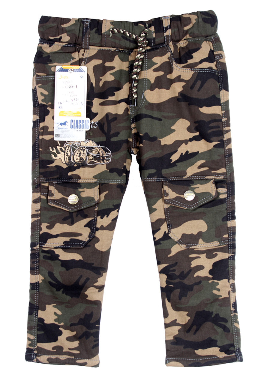 Теплые и удобные зимние брюки. Имеют стандартный набор карманов + два больших и вместительных кармана на коленях, принт с автомобилем на передней части, классическую камуфляжную расцветку и удобные завязки