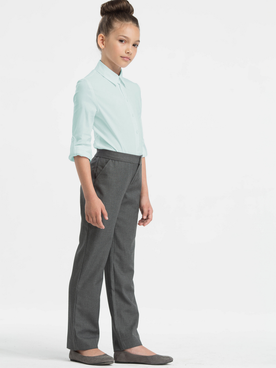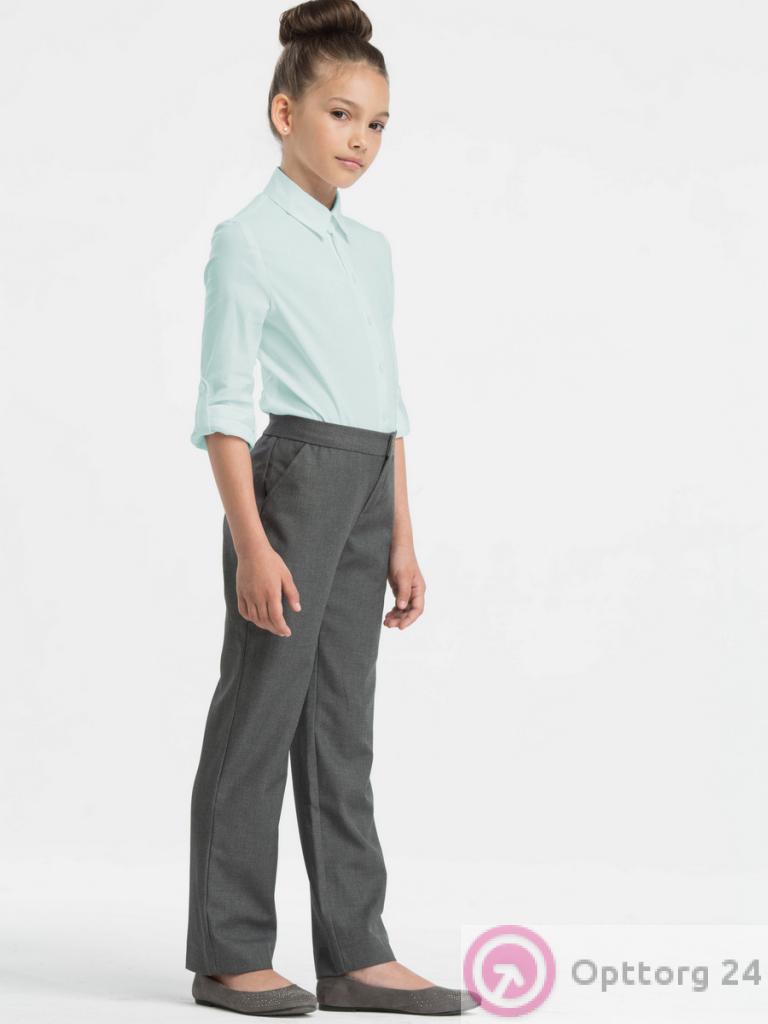 Брюки серые для девочек серого цвета с завышенной талией. Отличный выбор для вашего ребенка в школу. Изделие выполнено с карманами по бокам.