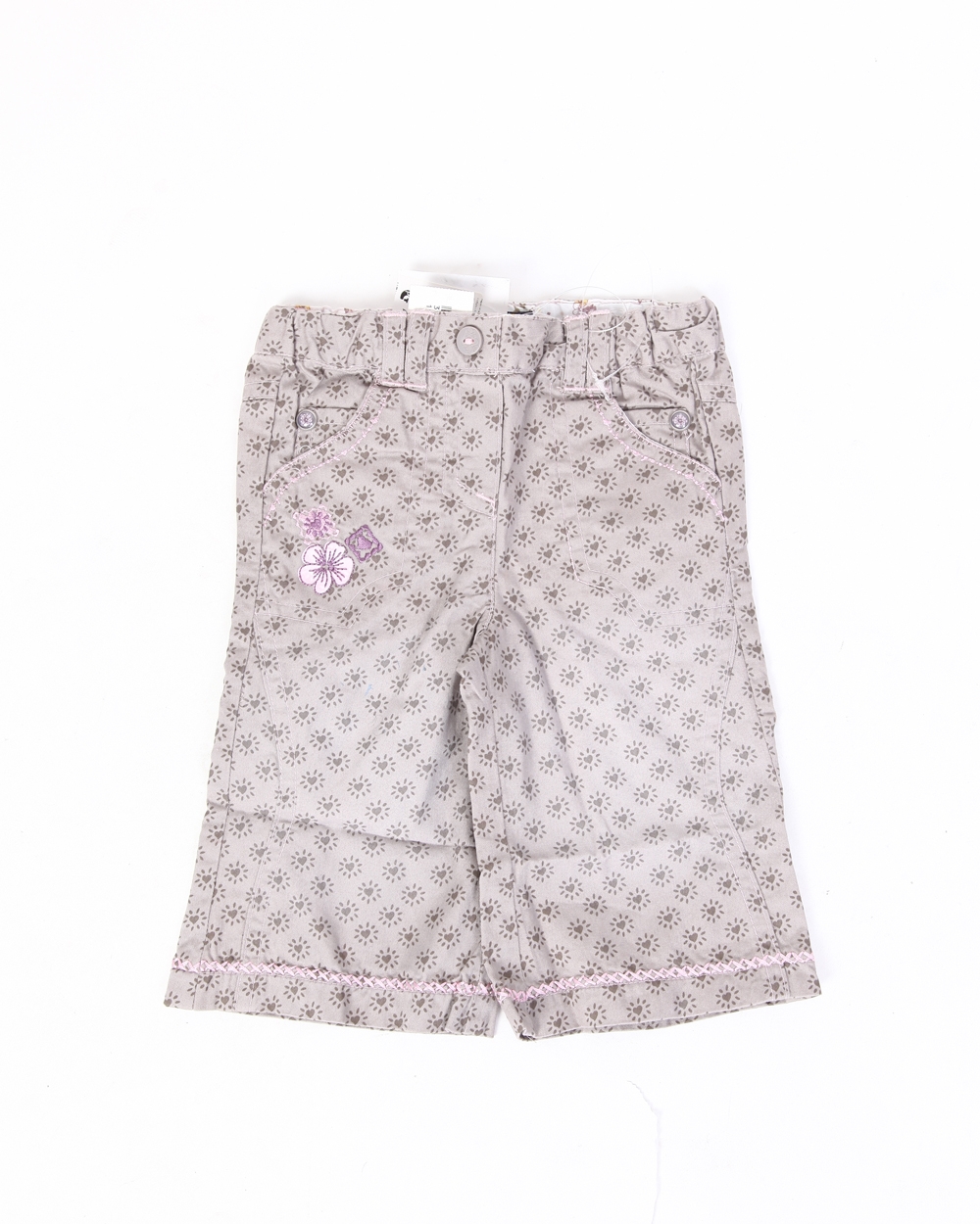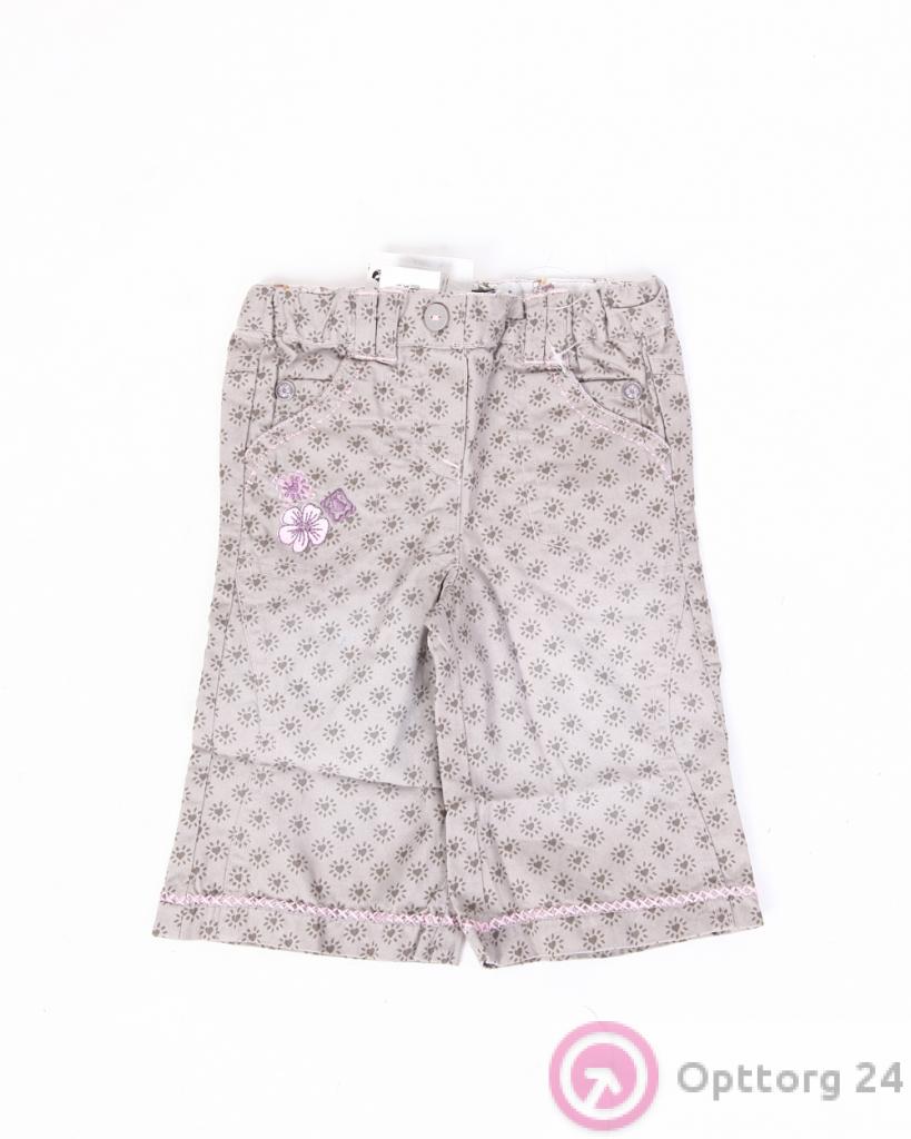 Брюки для девочки светло-серые с цветами оптом