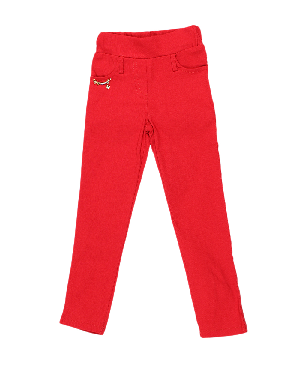 Детские джегинсы яркого красного цвета. Пояс с вшитой эластичной резинкой.