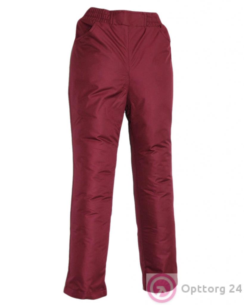 Детские брюки для девочки. Модель имеет прямой крой и выполнена в малиновом цвете. На поясе вшита резинка. Ткань с водооталкивающими свойствами, а внутренняя подкладка - флис.