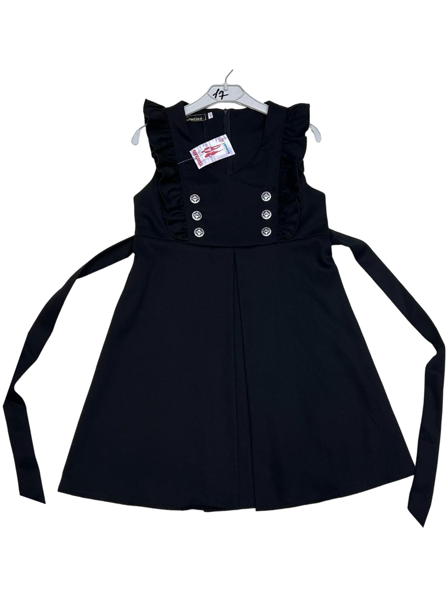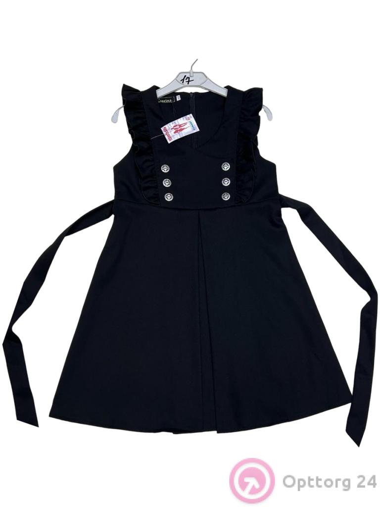 Школьный сарафан для девочки на бретелях – это стильная и удобная вещь, которая подойдет для повседневной носки в школе. Сарафан выполнен из качественной и прочной ткани, которая долго сохраняет свою форму и цвет. Расклешенная широкая юбка спереди со складкой, плечи волнистые крылышки, тканевый пояс хлястик, который можно завязать на бант как спереди, так и сзади, декорирован рюшами и пуговицами на груди в два ряда.