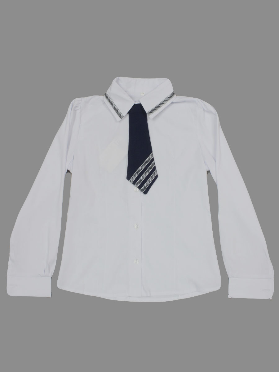 Детская блузка для девочки, модель белого цвета с синим галстуком. оптом