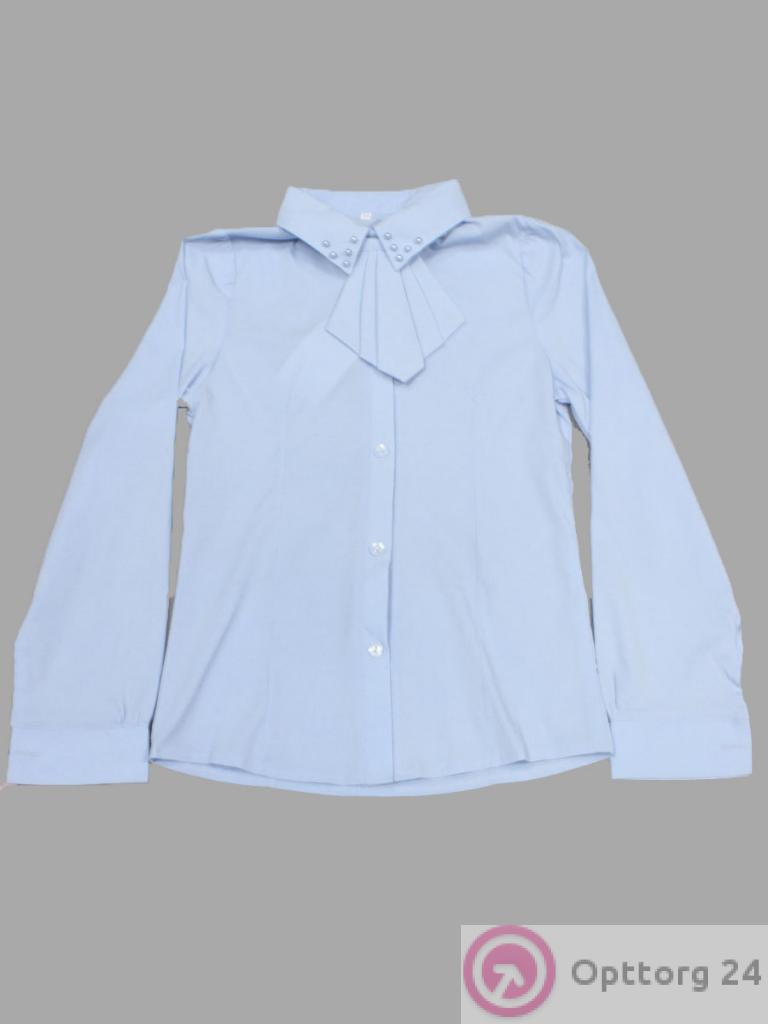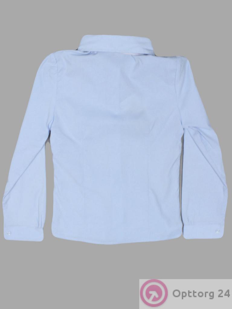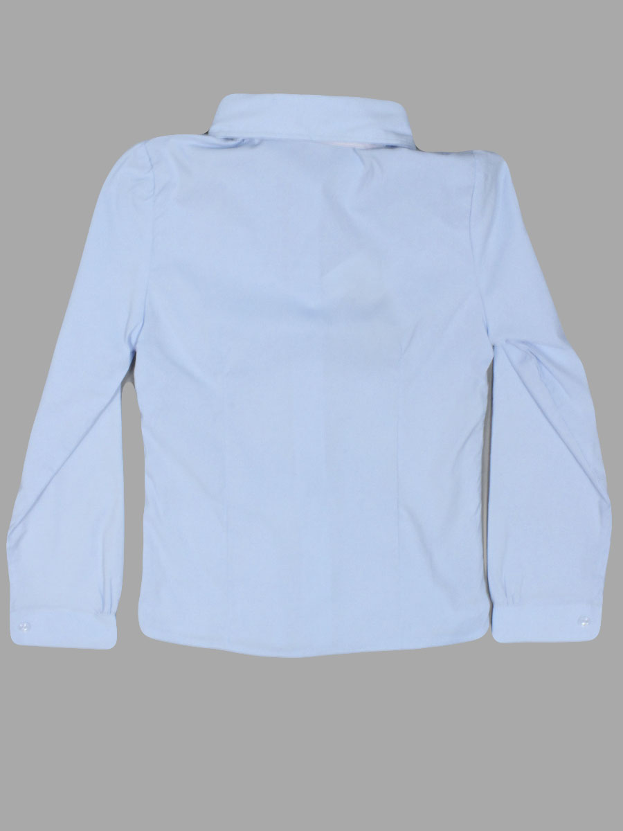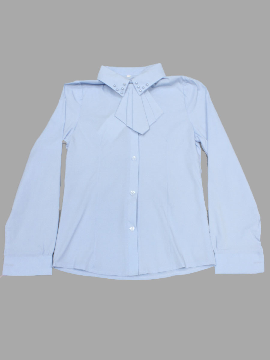 Блузка детская школьная форма модель голубого цвета с длинным рукавом и небольшим украшением на вороте