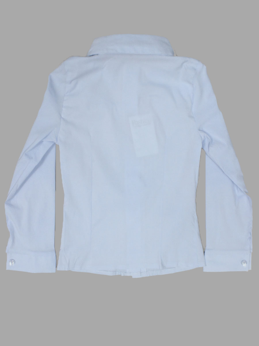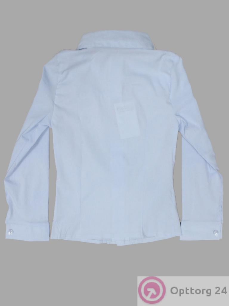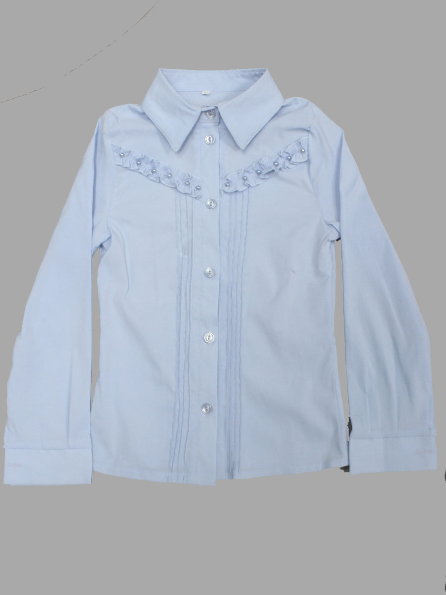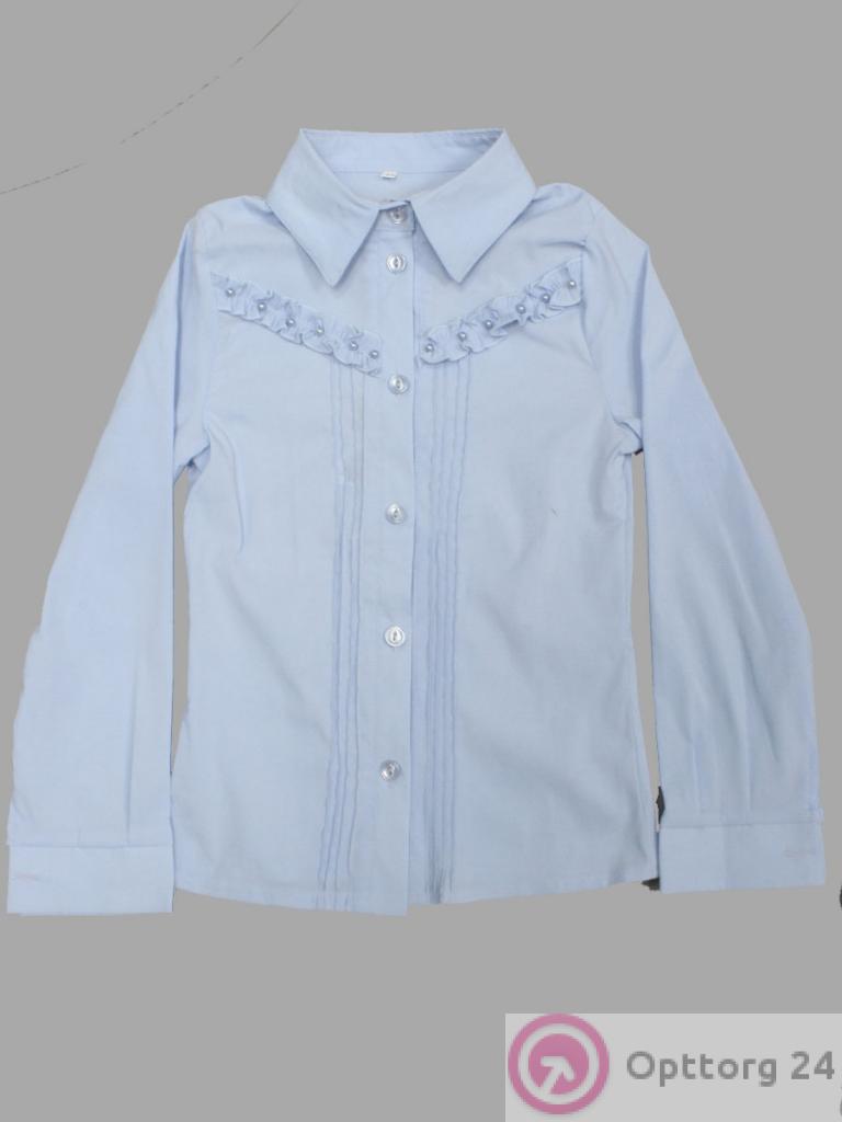 Детская блузка голубого цвета украшенная рюшем и бусинами в области груди. оптом