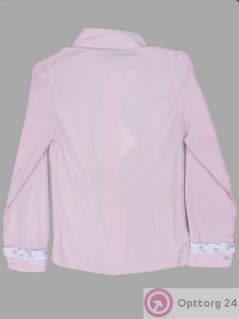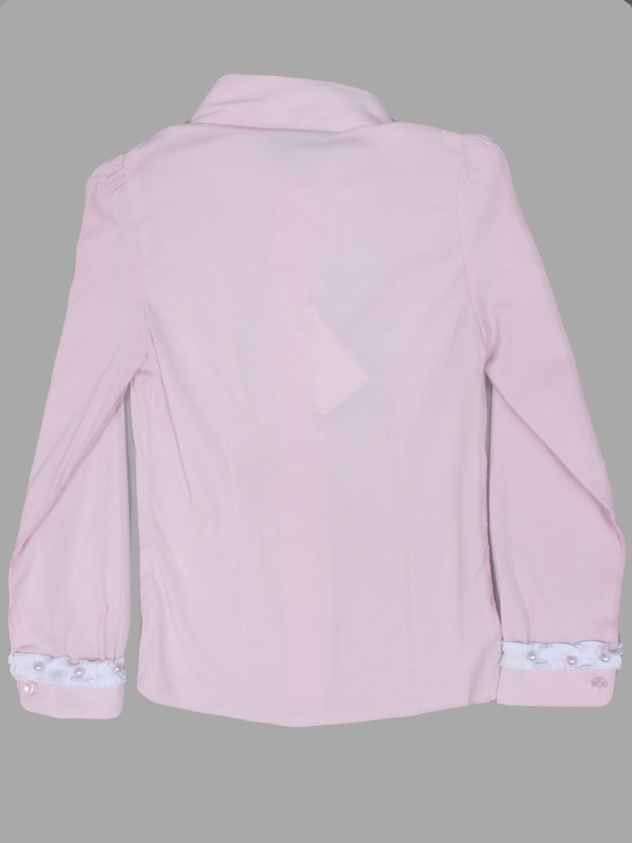 Блузка детская школьная для девочки, модель розового цвета с длинным рукавом.