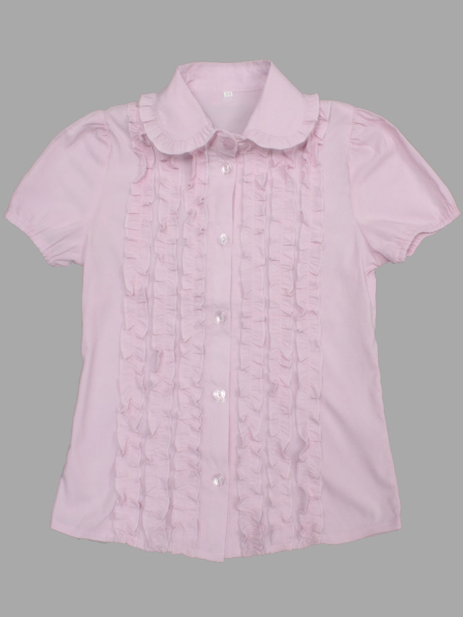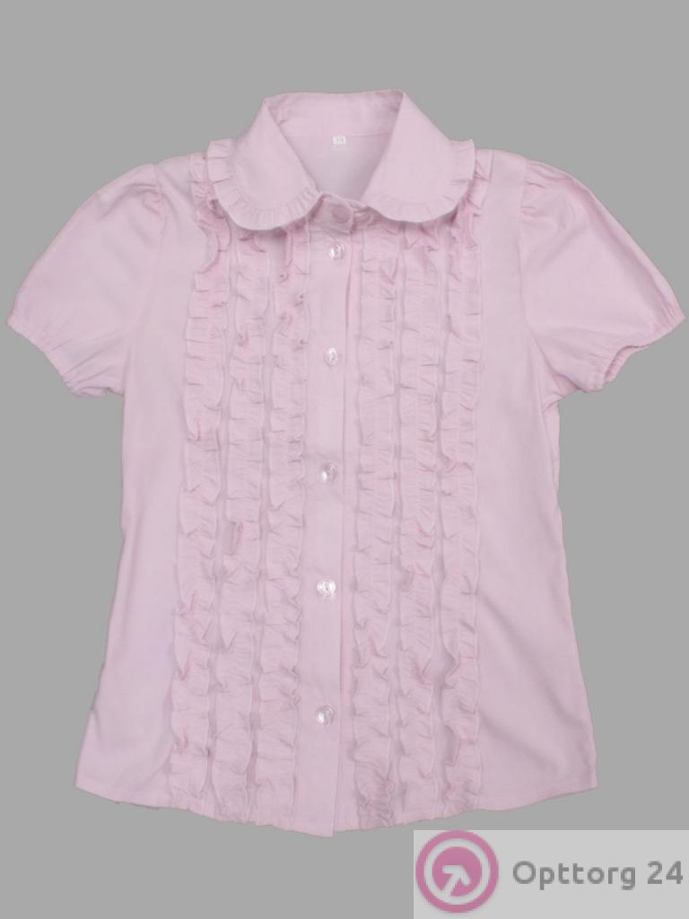 Блузка школьная детская розового цвета с коротким рукавом.