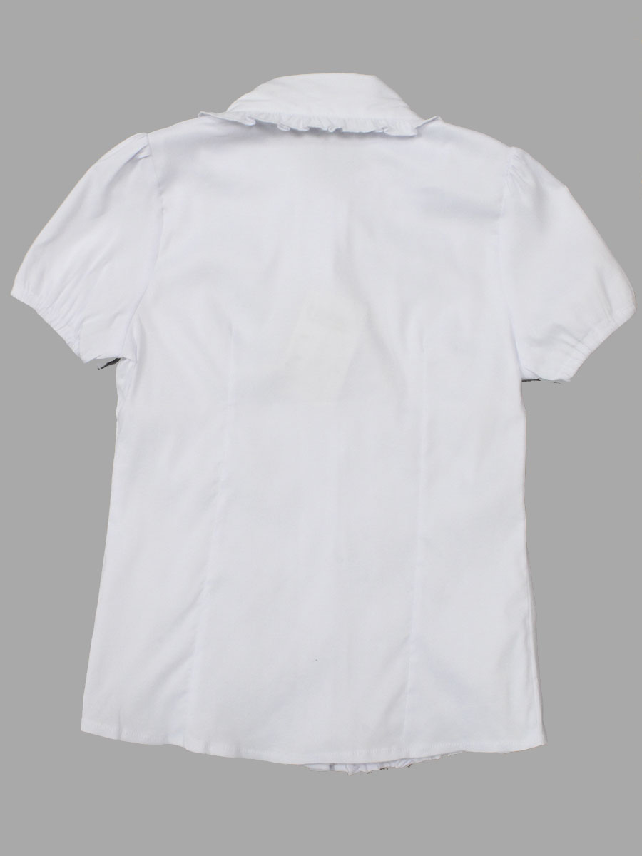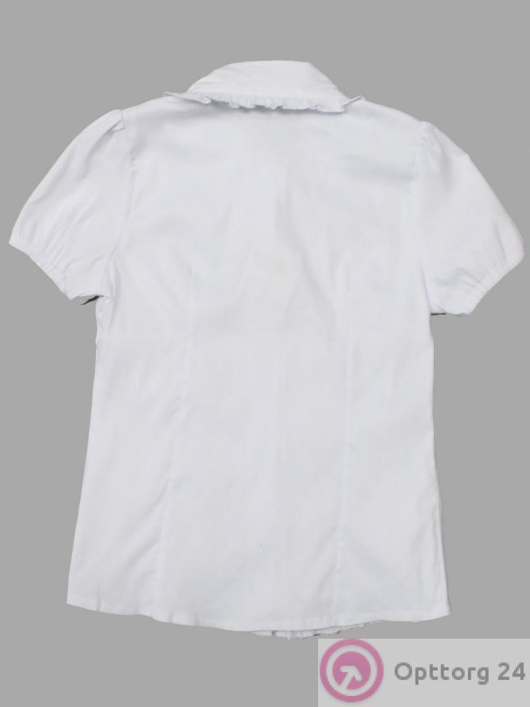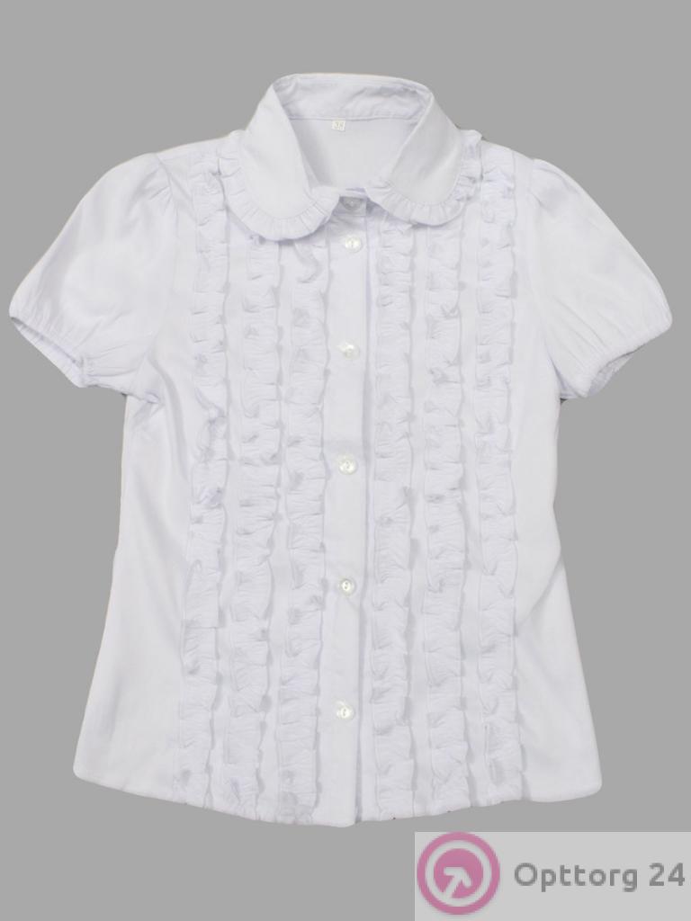 Детская блузка с коротким рукавом, школьная модель белого цвета с рюшем. оптом