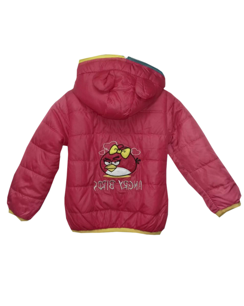 Яркая детская куртка с актуальным изображением любимого детского героя Злой птички. Спереди два контрастных жёлтых бантика. Молния застегивается вдоль по капюшону.