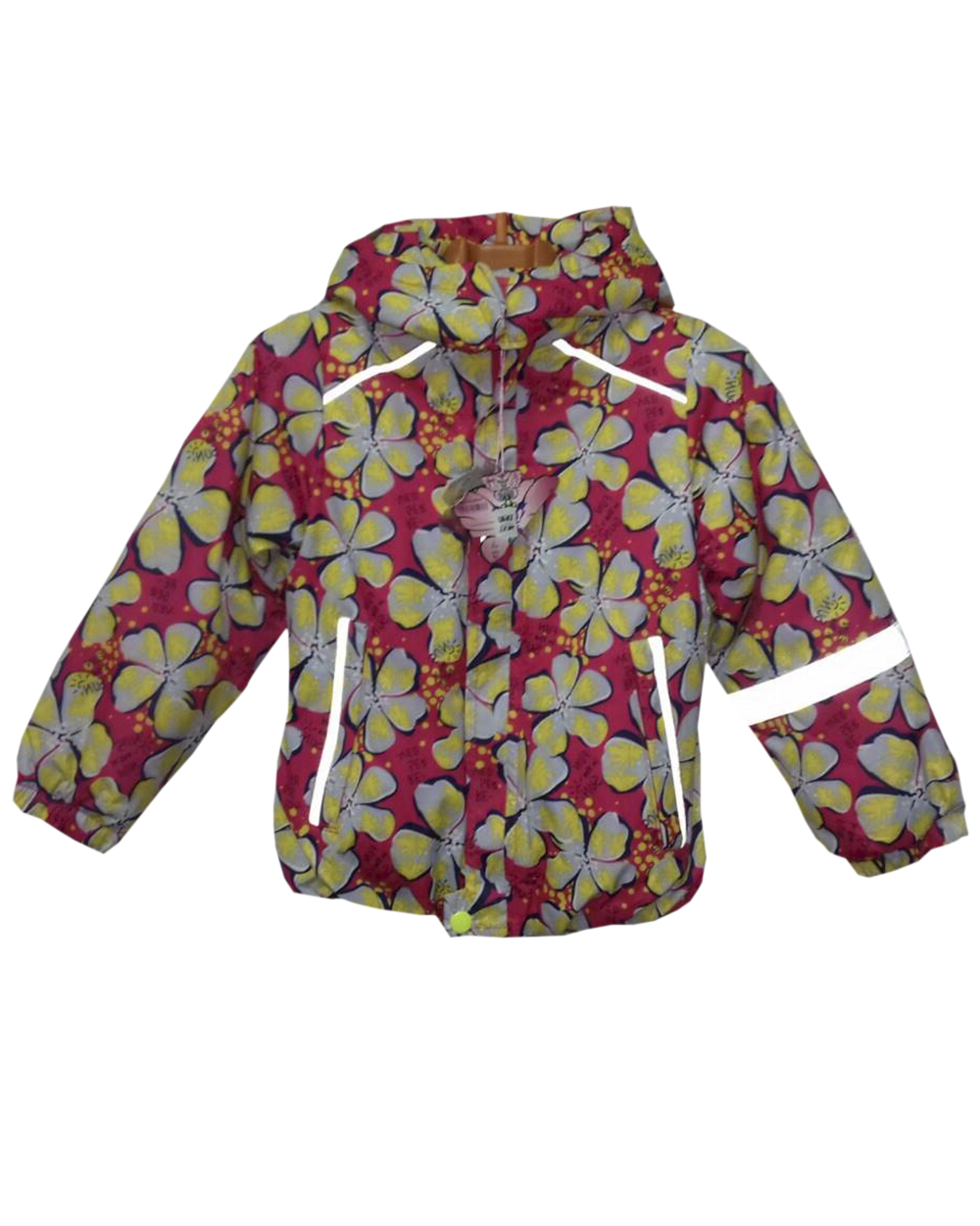 Куртка прямого силуэта. Оригинальный яркий рисунок придает модели своеобразную изюминку. Для безопасности в изделии предусмотрены светоотражатели.