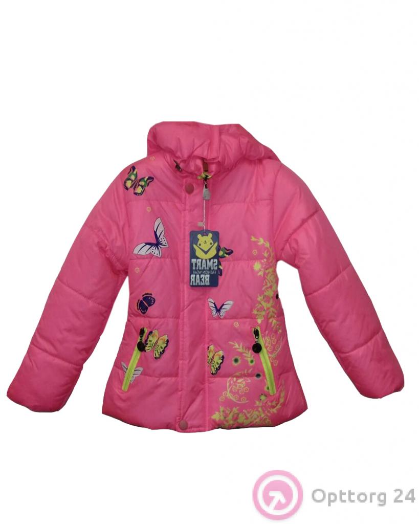 Симпатичная детская курточка с веселым принтом в виде бабочек. Застежка молния дополнена ветрозащитной планкой.