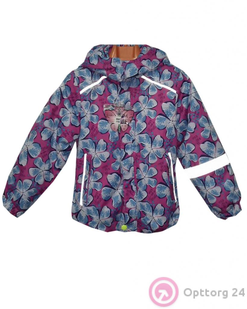 Детская куртка розовая с крупными цветами оптом