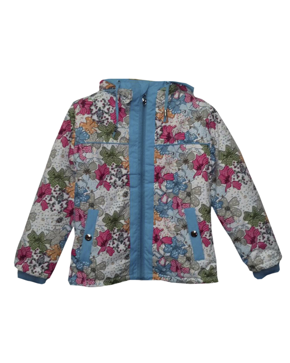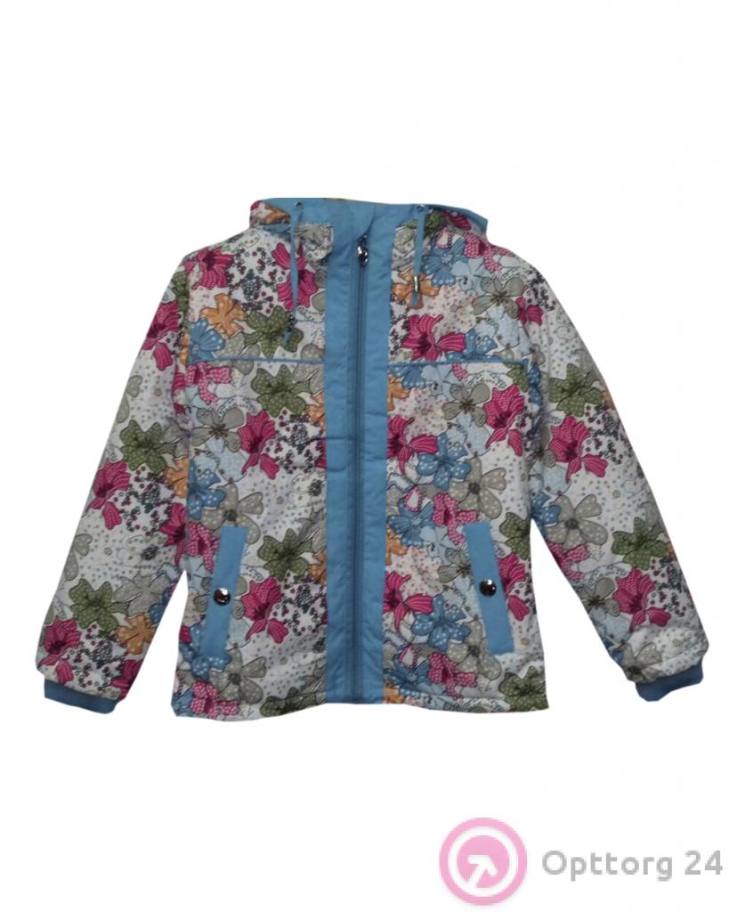 Детская куртка с цветами голубая оптом