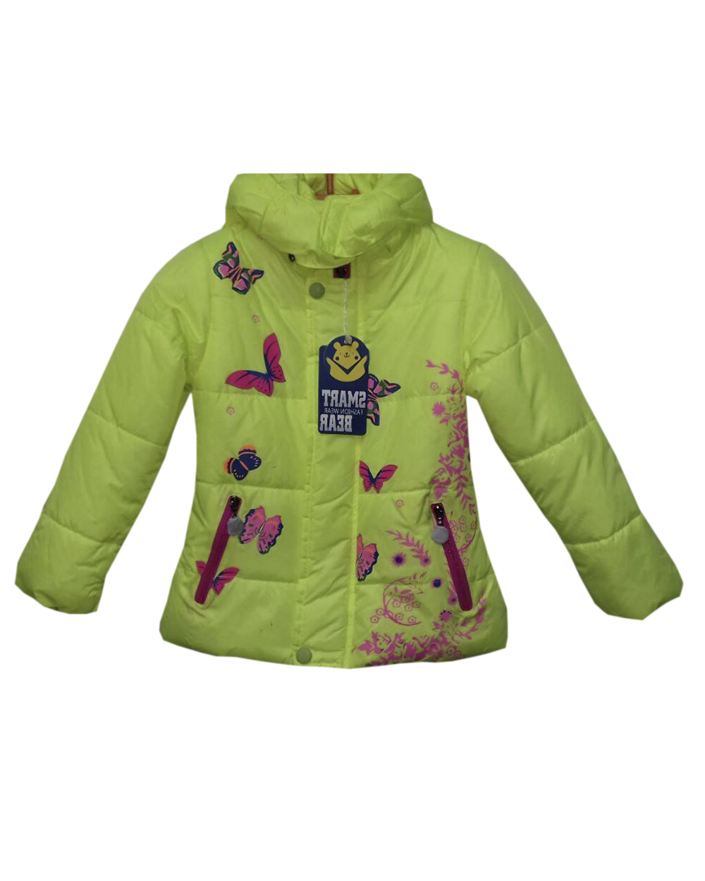 Красивая детская курточка с капюшоном и двумя боковыми карманами на молнии. Застежка-молния прикрыта ветрозащитной планкой.